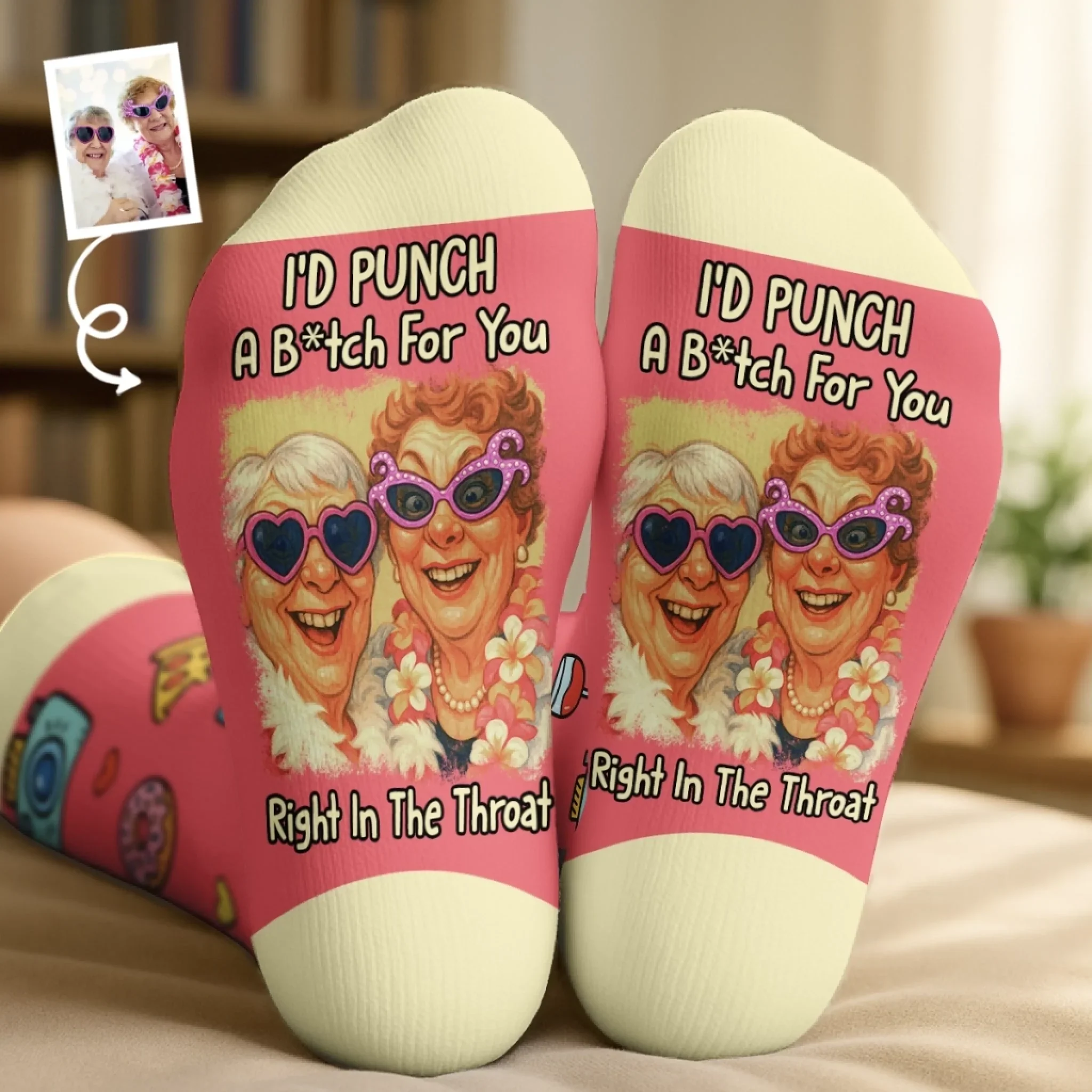 Custom Photo Funny Caricature Crew Socks - Personalized Best Friend Birthday Gifts For Women, Besties, Sisters, BFF - Partners In Crime Always