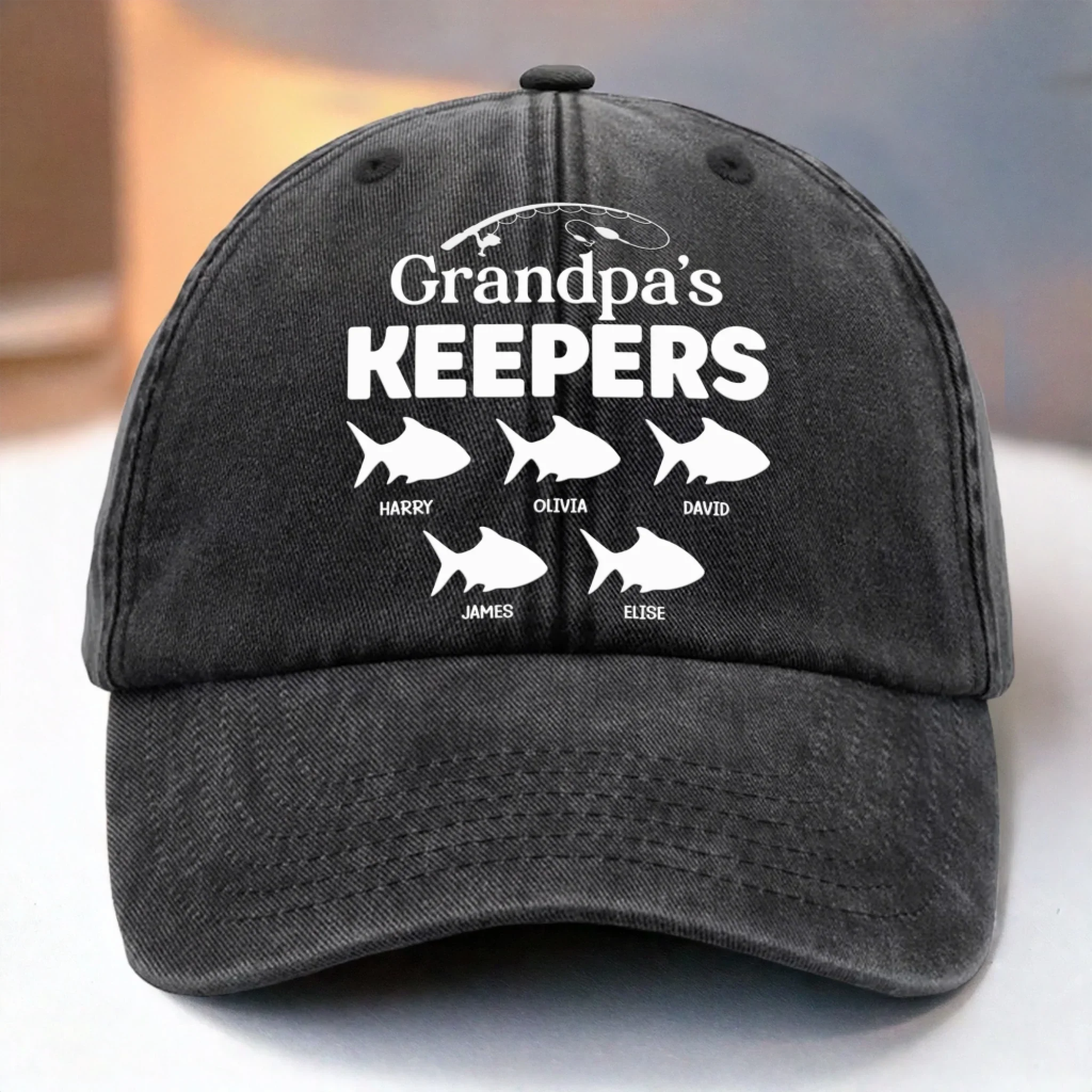 Custom Vintage Washed Denim Baseball Cap - Personalized Birthday Gifts For Dad, Grandpa - Fishing For Family Memories