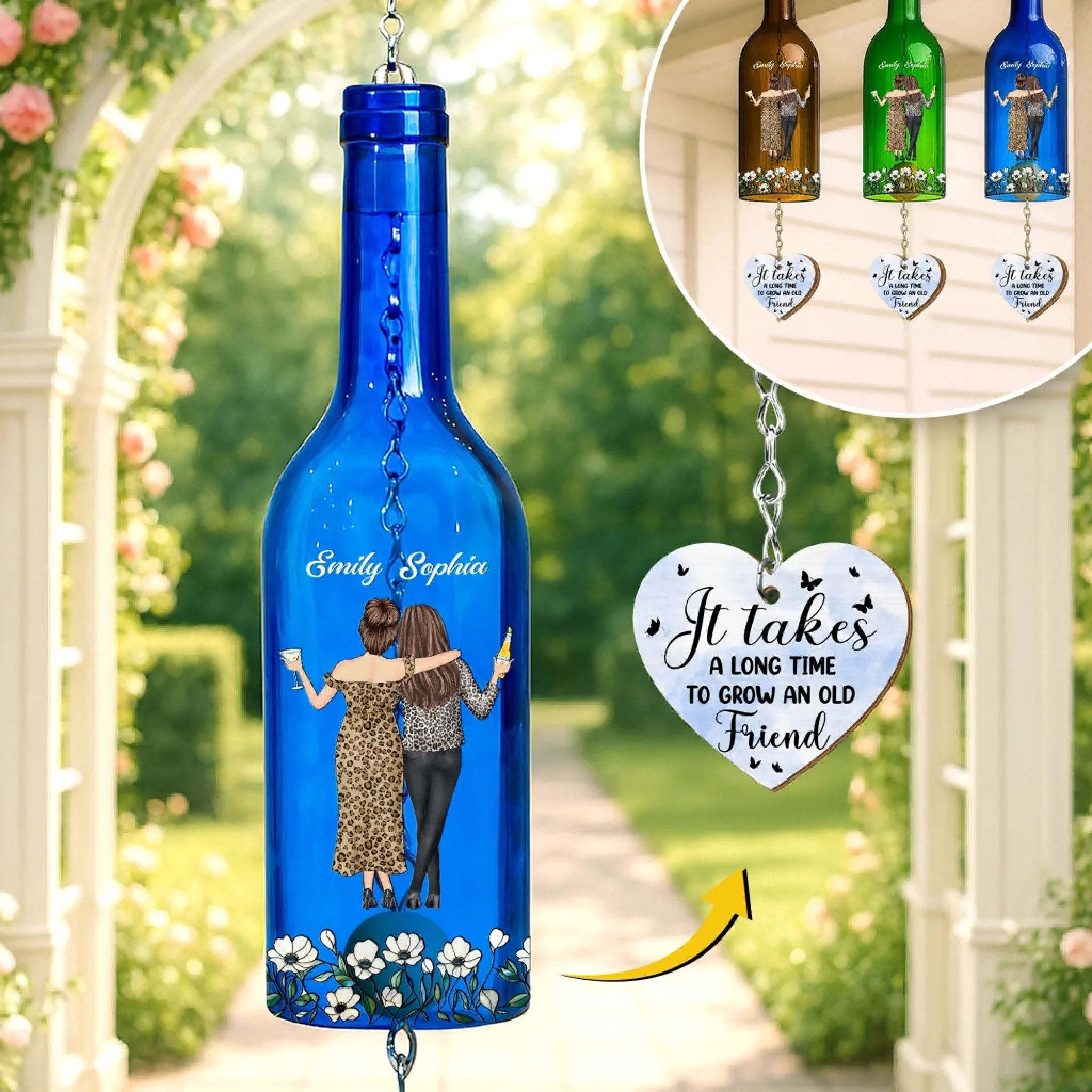 Custom Wine Bottle Wind Chime - Personalized Best Friend Birthday Gifts For Women, Besties, Sisters, BFF - No Limits To Friendship