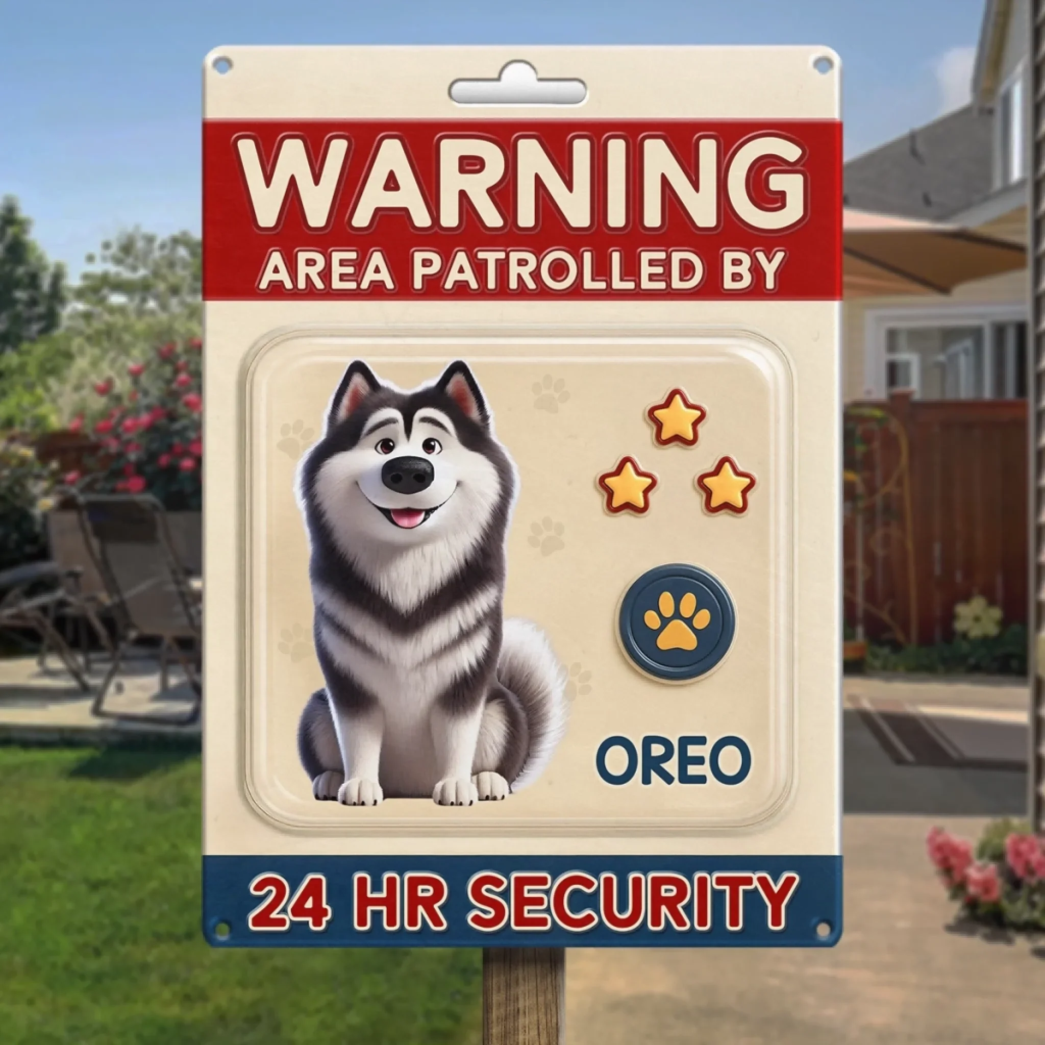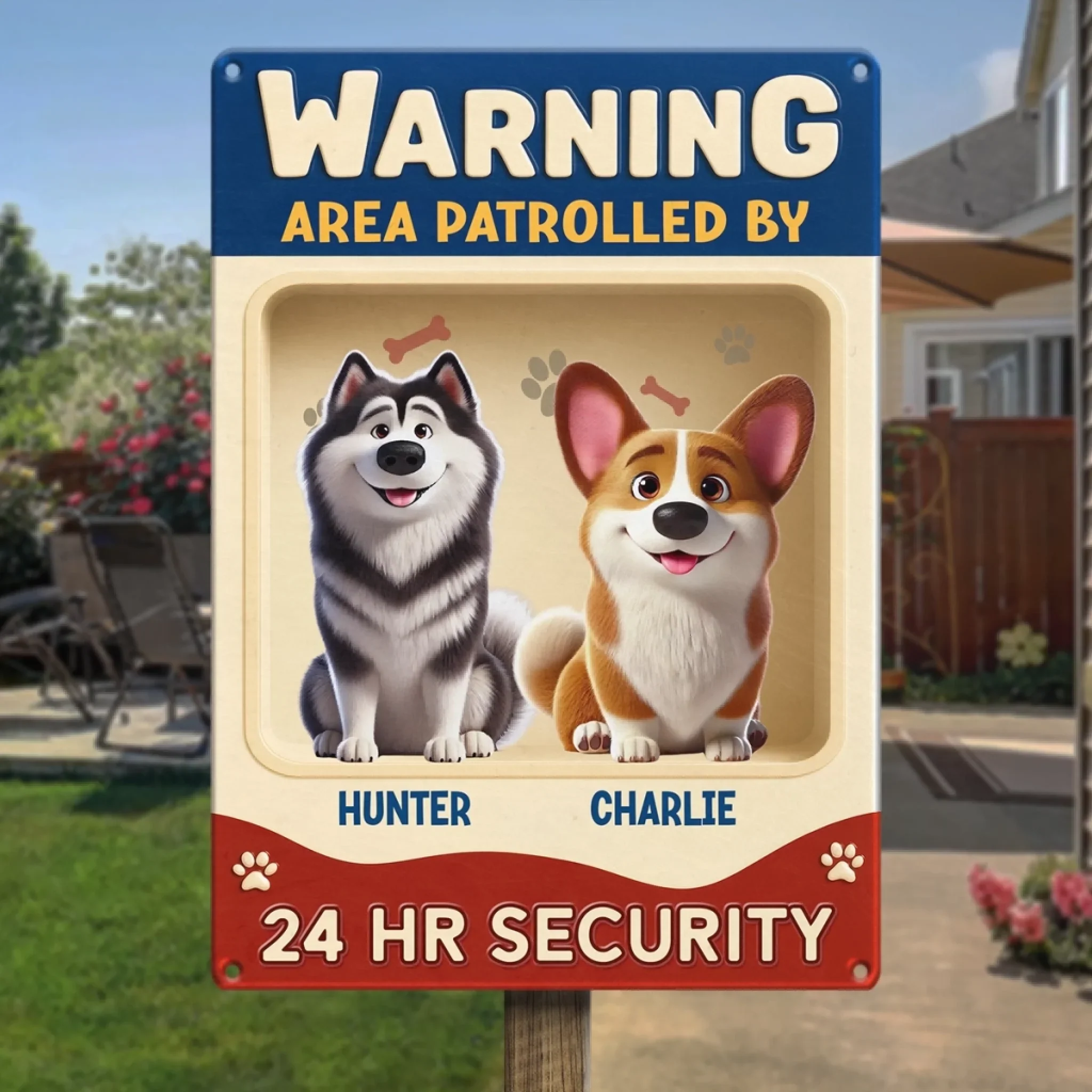 Custom Home Decor Metal Sign - Personalized Birthday Gifts For Dog Lovers, Dog Dad And Mom - Fluffy Security On Duty