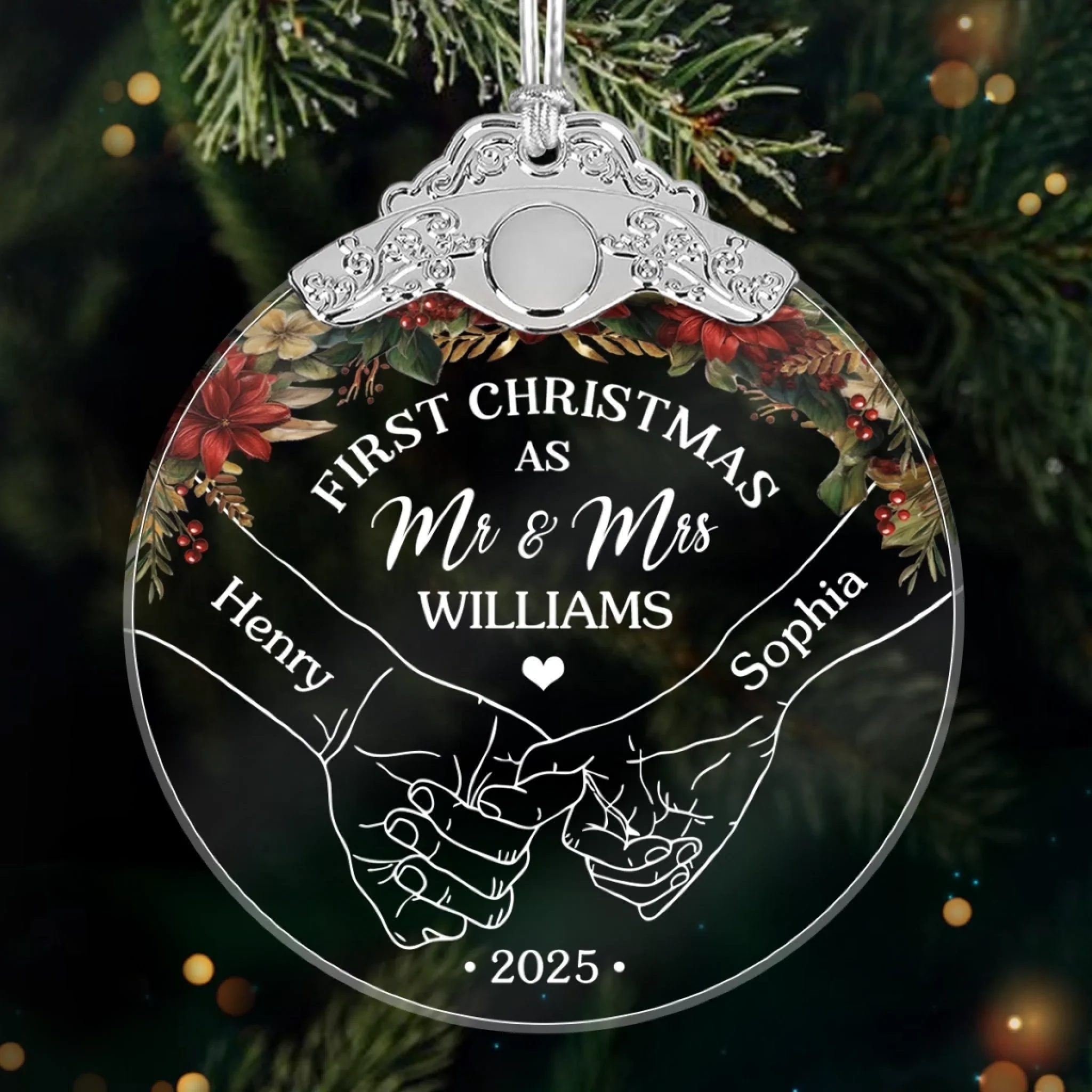 Custom Glass Ornament - Personalized Anniversary Christmas Wedding Gifts For Husband And Wife, Him And Her - Newlyweds First Christmas