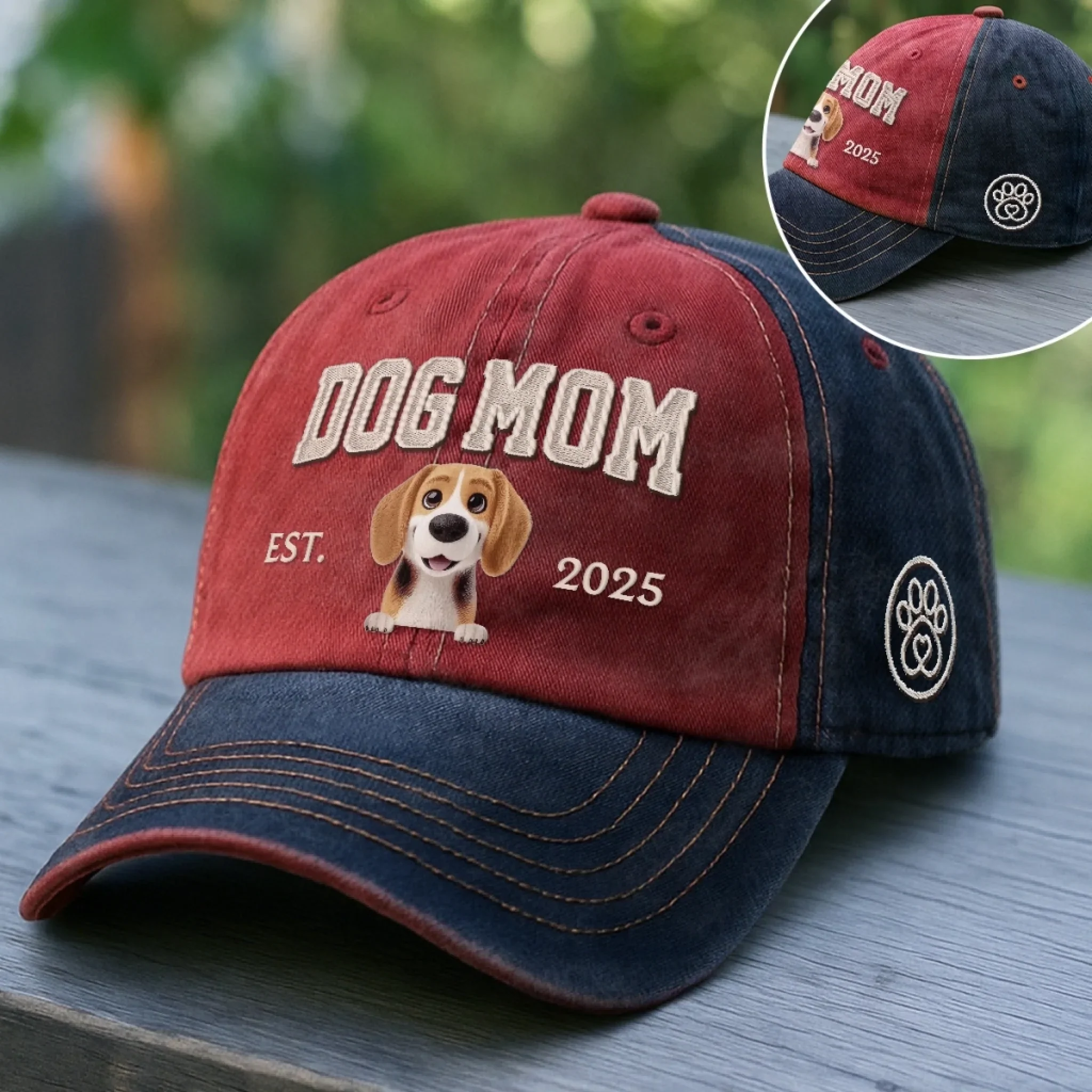 Custom Embroidered Effect Washed Denim Baseball Cap - Personalized Birthday Gifts For Dog Cat Lovers, Dog Dad And Mom, Cat Owners - Best Dog Mom Ever