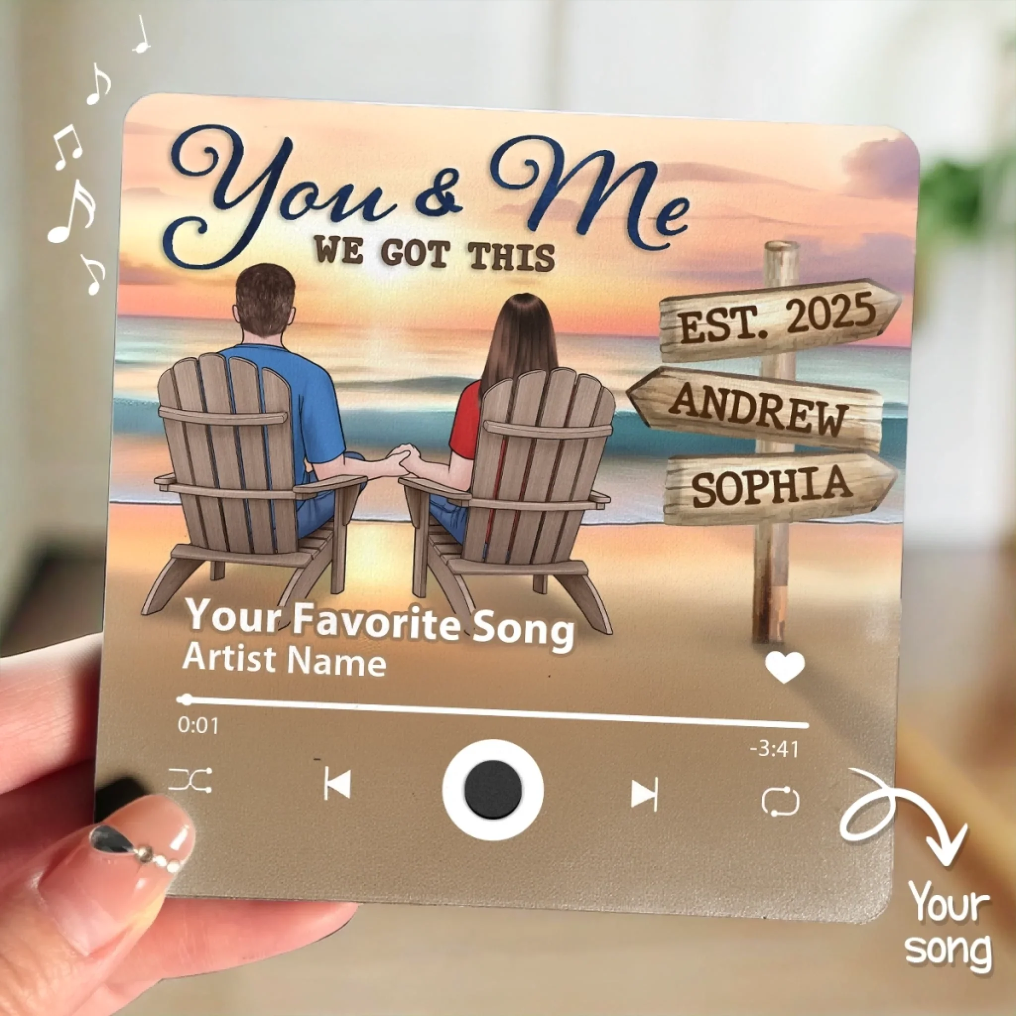 Custom Music Fridge Magnet That Can Play Songs - Personalized Anniversary Wedding Gifts For Husband And Wife, Him And Her - Our Story, Our Shore