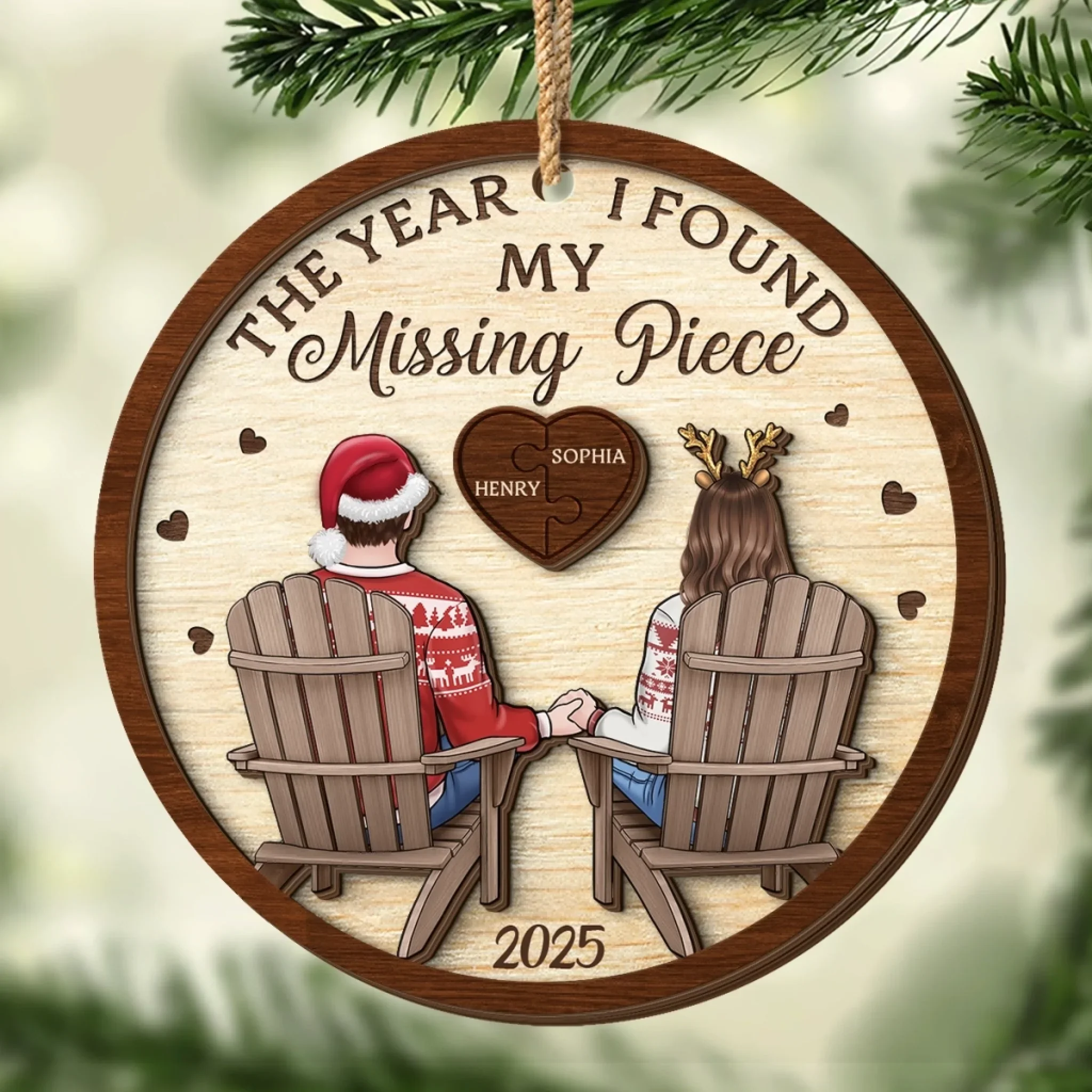 Custom Double Layer Wooden Ornament - Personalized Anniversary Christmas Wedding Gifts For Husband And Wife, Him And Her - My Missing Piece