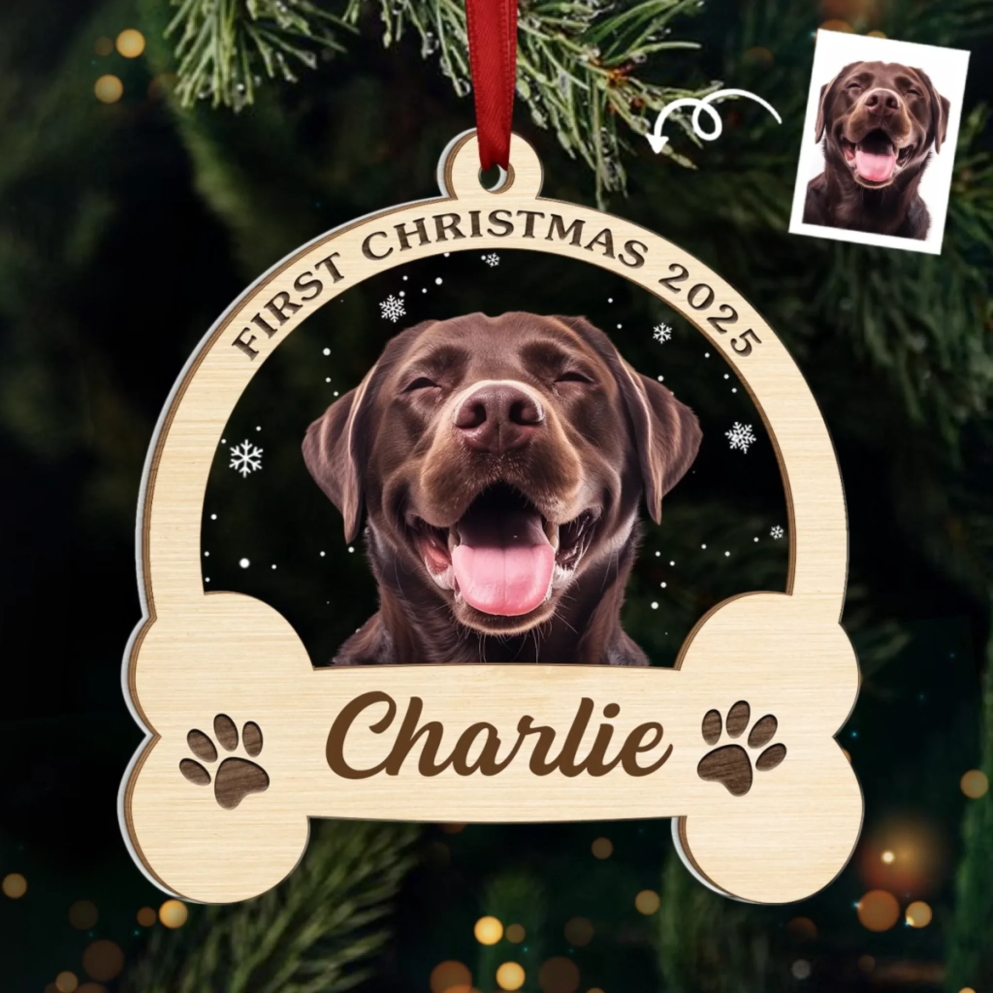 Custom Photo Acrylic Ornament - Personalized Pet Christmas Memorial Sympathy Gifts For Dogs, Cats - Forever In My Broken Heart