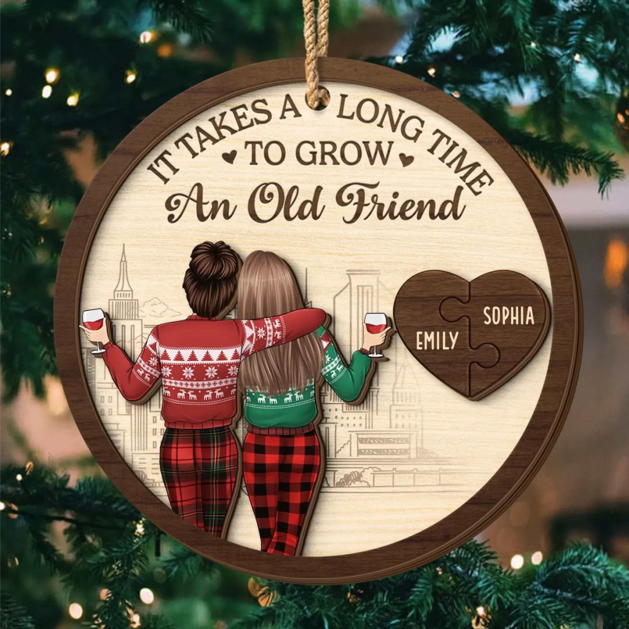 Custom Double Layer Wooden Ornament - Personalized Best Friend Christmas Birthday Gifts For Women, Besties, Sisters, BFF - My Partner in Crime Always