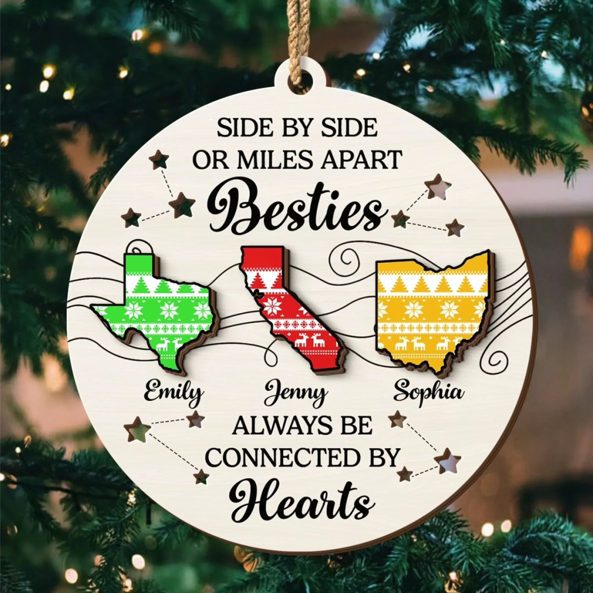 Custom Long Distance Double Layer Wooden Ornament - Personalized Best Friend Christmas Birthday Gifts For Women, Besties, Sisters, BFF - Far Away But Never Gone
