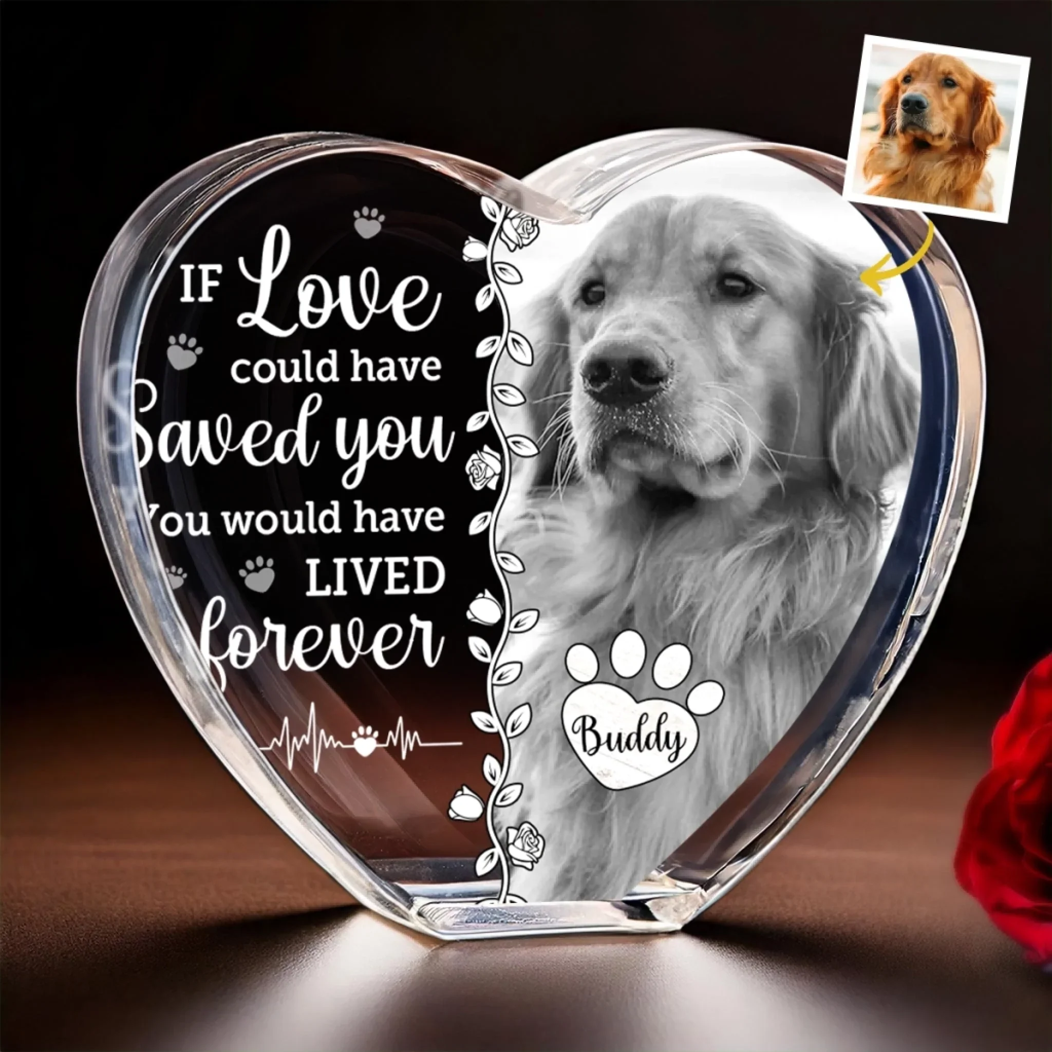 Custom Photo 3D Crystal Heart Shaped - Personalized Pet Memorial Sympathy Gifts For Dogs, Cats - Furever Loved And Missed