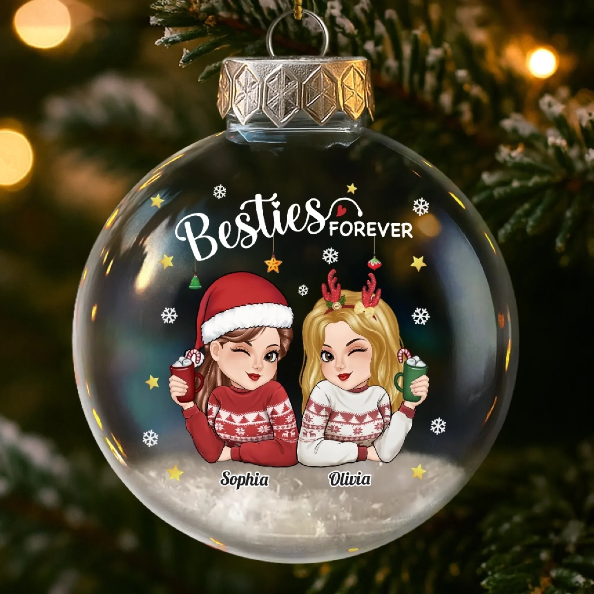 Custom Acrylic Ornament - Personalized Christmas Best Friend Birthday Gifts For Women, Besties, Sisters, BFF - Twinkling Lights True Friendship