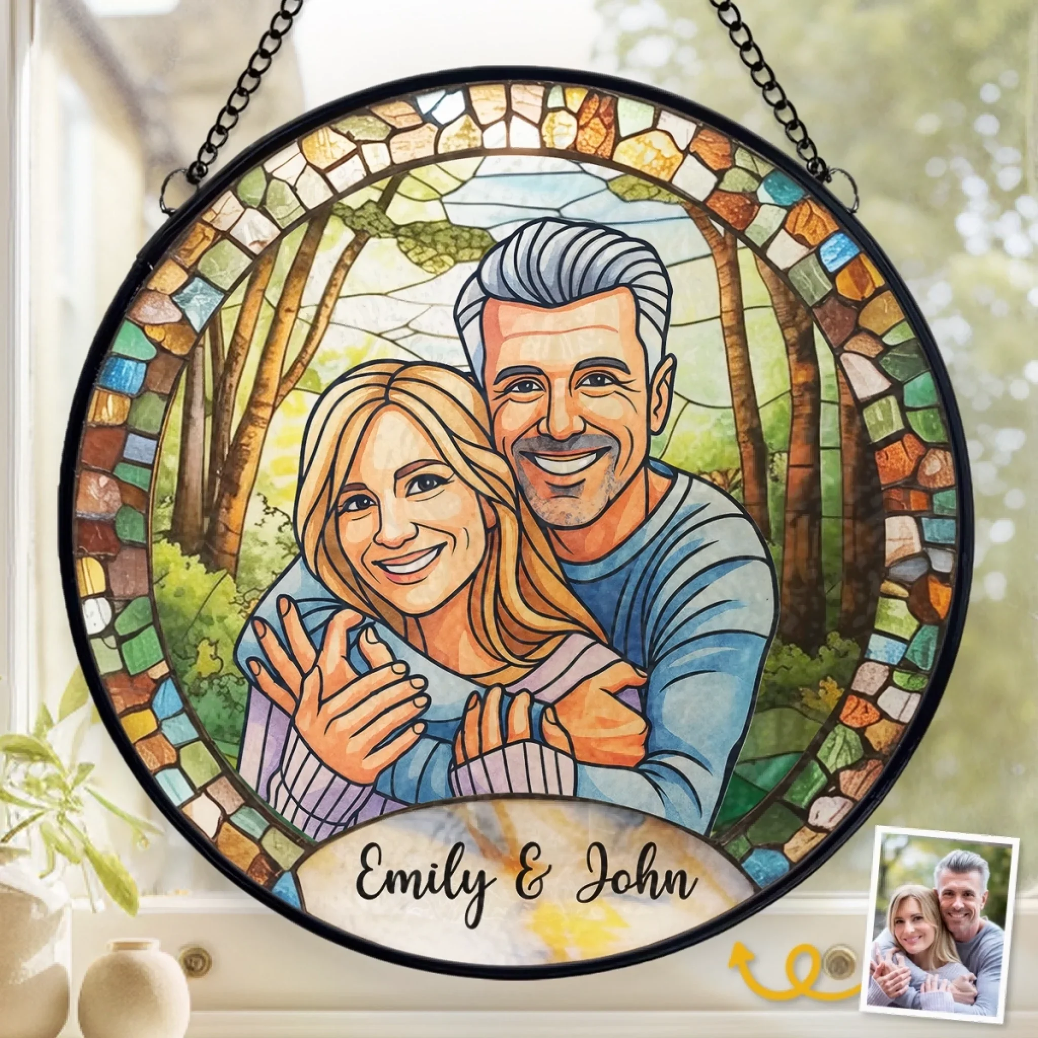 Custom Photo Stained Glass Window Hanging Suncatcher - Personalized Anniversary Wedding Gifts For Husband And Wife, Him And Her - Together, Painted In Forever