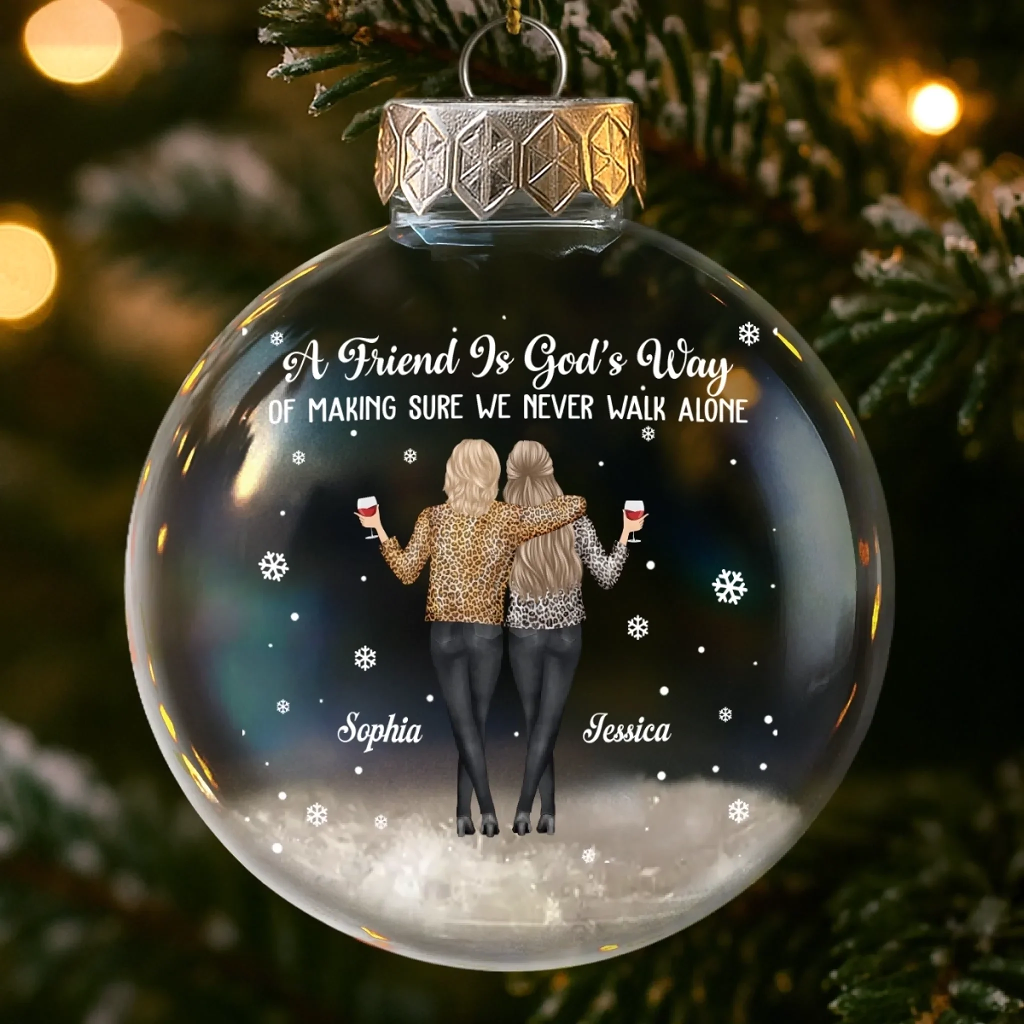 Custom Snow-Filled Ball Ornament - Personalized Christmas Best Friend Birthday Gifts For Women, Besties, Sisters, BFF - Friends Grow Wild And Free