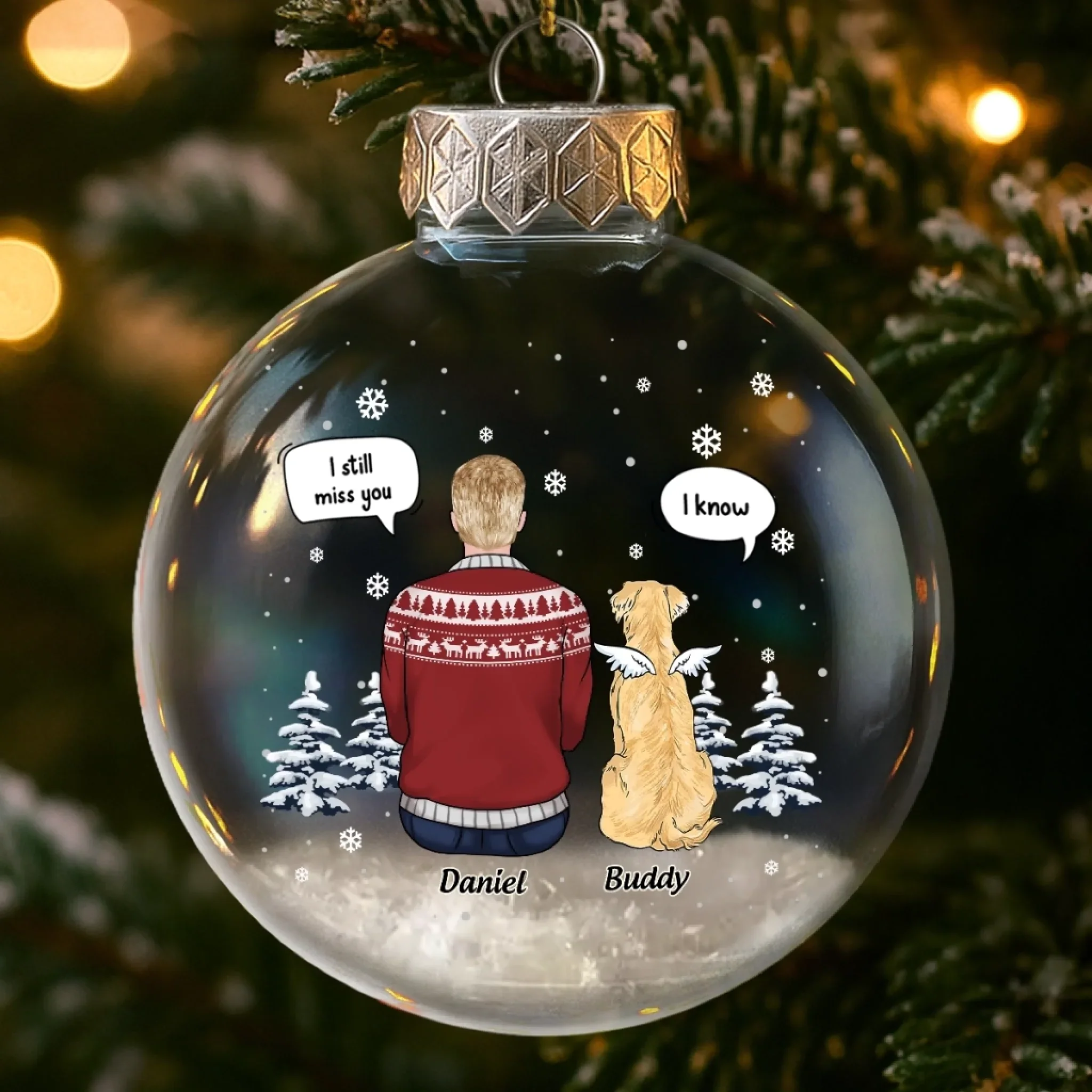 Custom Snow-Filled Ball Ornament - Personalized Pet Christmas Memorial Sympathy Gifts For Dogs - Forever Loved, Never Forgotten Friend