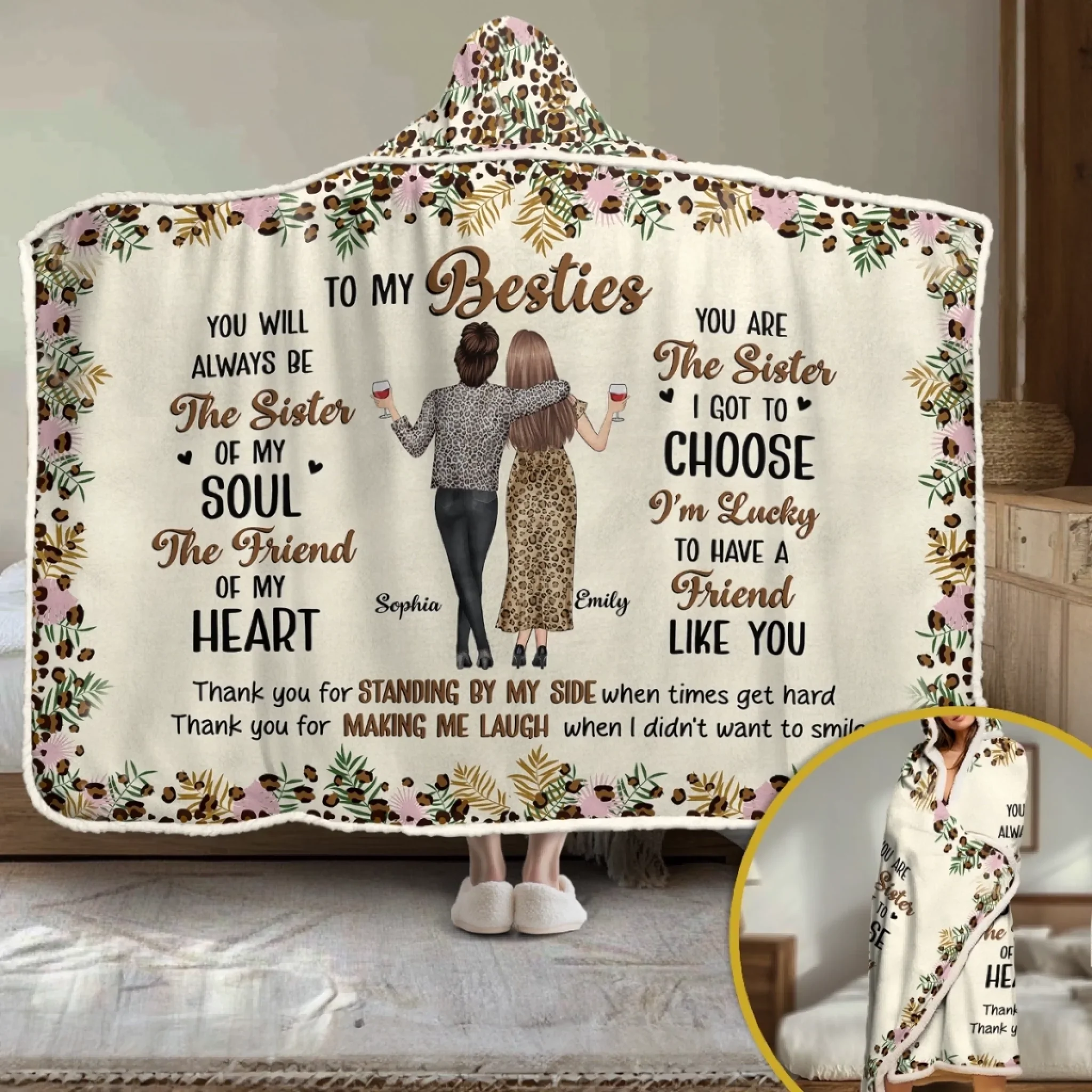 Custom Snuggle Blanket, Hoodie Blanket - Personalized Best Friend Birthday Gifts For Women, Besties, Sisters, BFF - Besties Make Life Sparkle Brighter