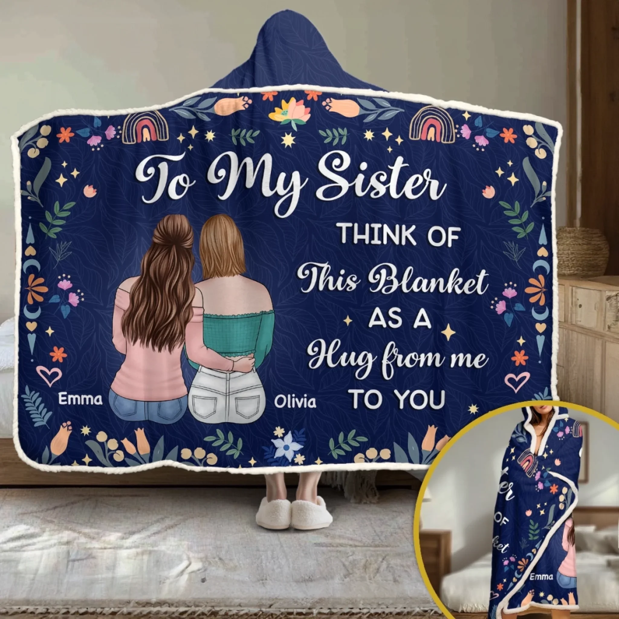 Custom Snuggle Blanket, Hoodie Blanket - Personalized Best Friend Birthday Gifts For Women, Besties, Sisters, BFF - Smiles Shine Stronger With Friends
