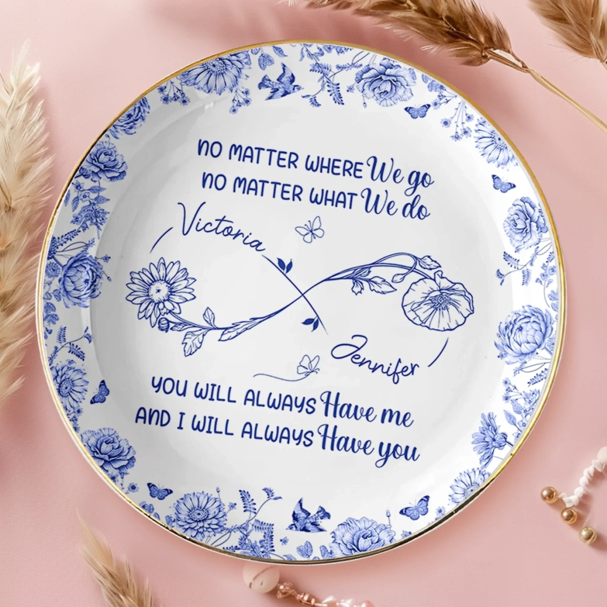 Custom Full-Print Round Jewelry Dish - Personalized Best Friend Birthday Gifts For Women, Besties, Sisters, BFF - Blooming Together Like Wildflowers