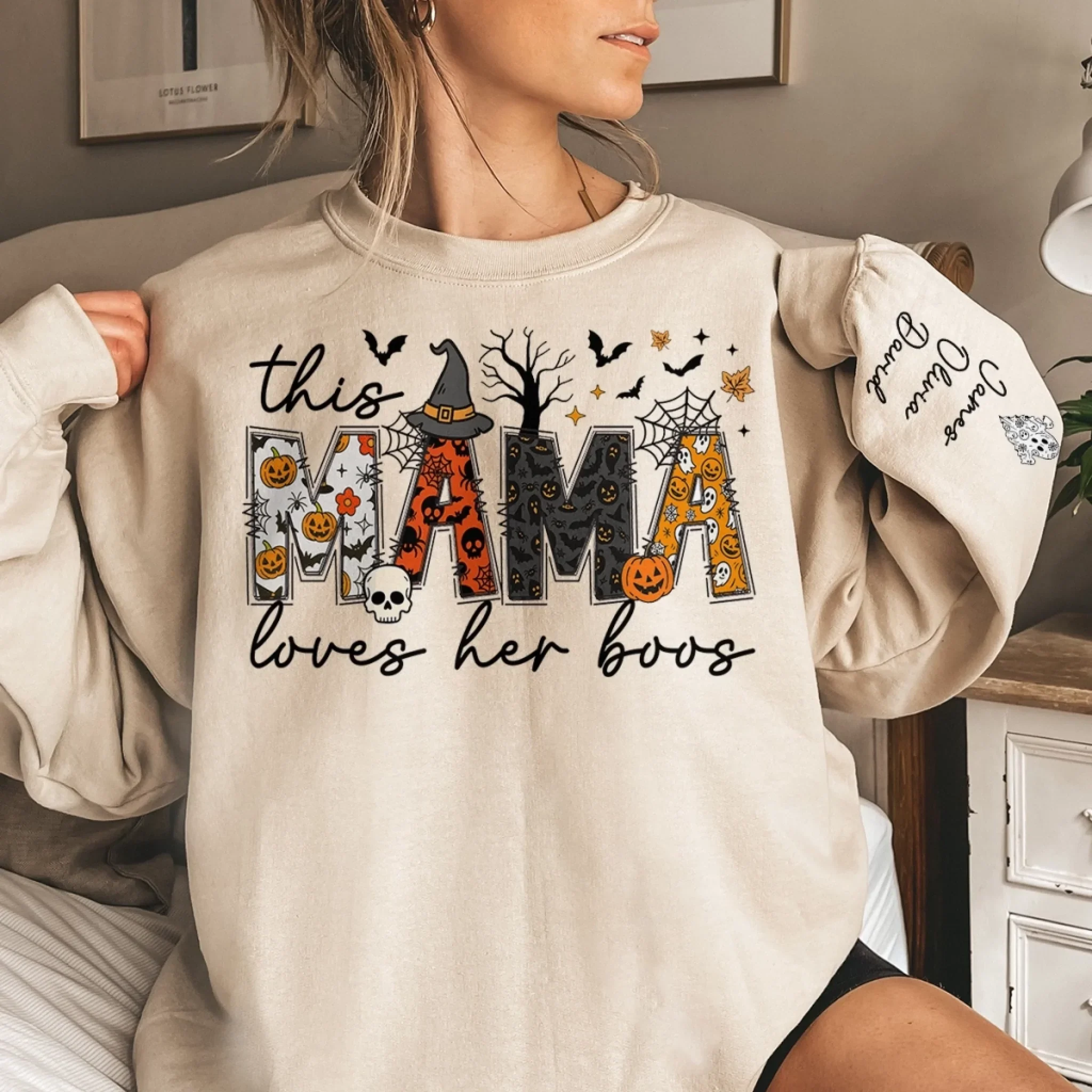 Custom Unisex Sweatshirt, Hoodie With Design On Sleeve - Personalized Halloween Birthday Gifts For Mom, Grandma - Spooky Nights With Loved Ones
