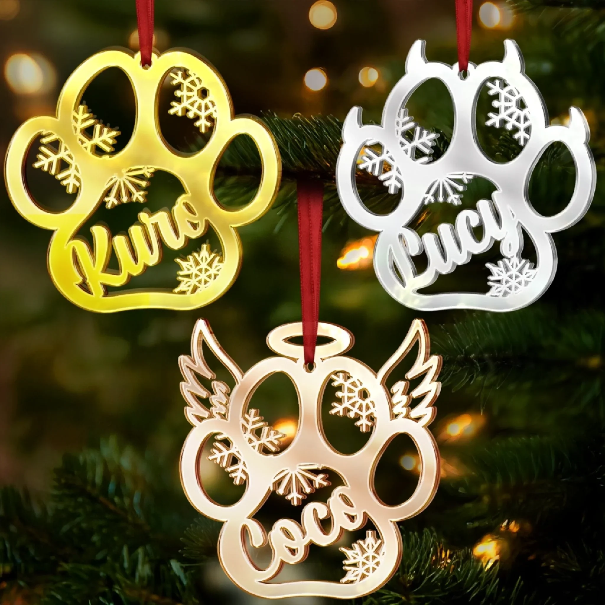 Custom Mirrored Acrylic Ornament - Personalized Christmas Memorial Sympathy Gifts For Family, Dog Cat Lovers - My Furry Angel With Wings