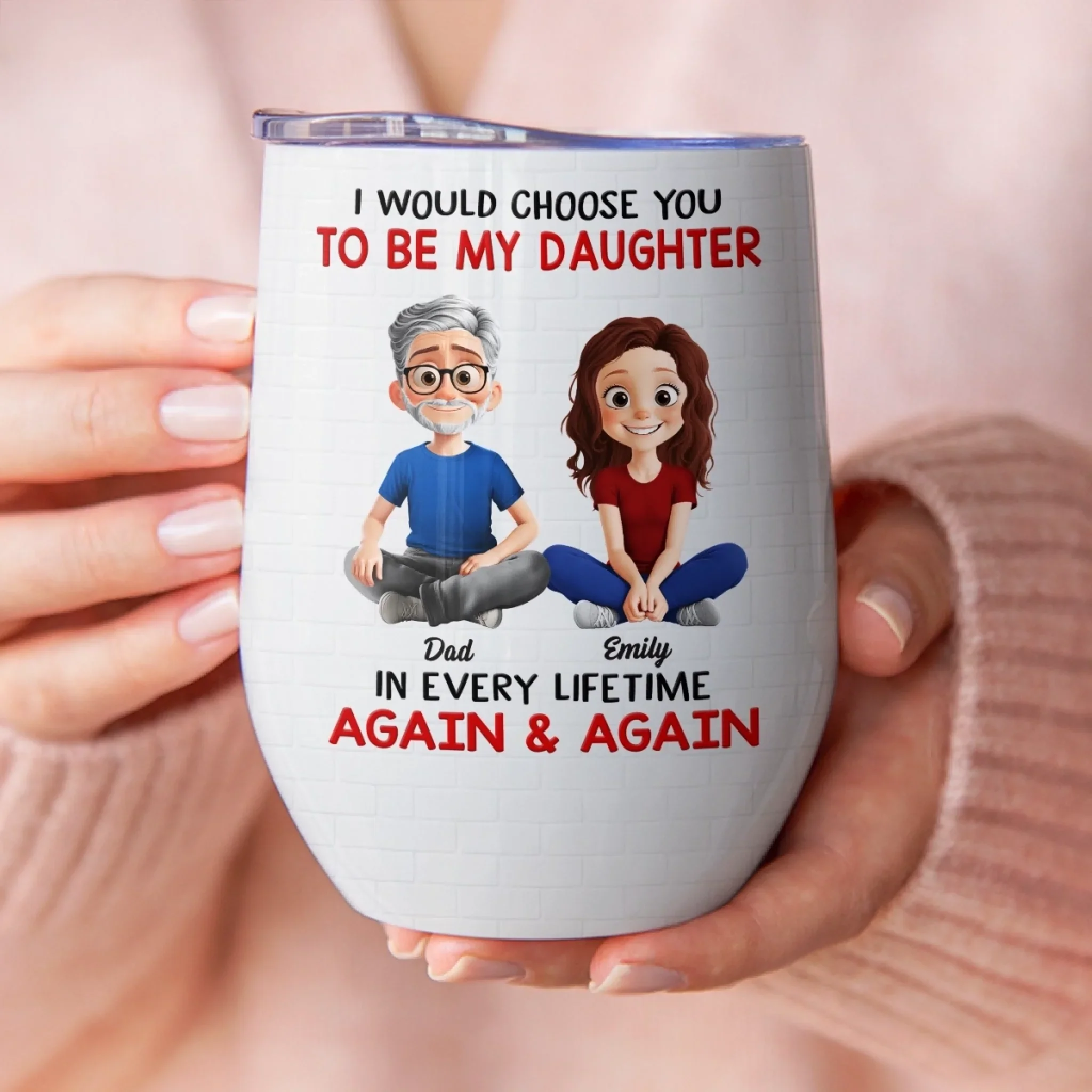 Custom Wine Tumbler - Personalized Birthday Gifts For Dad, Daughter - I d Choose You Every Lifetime