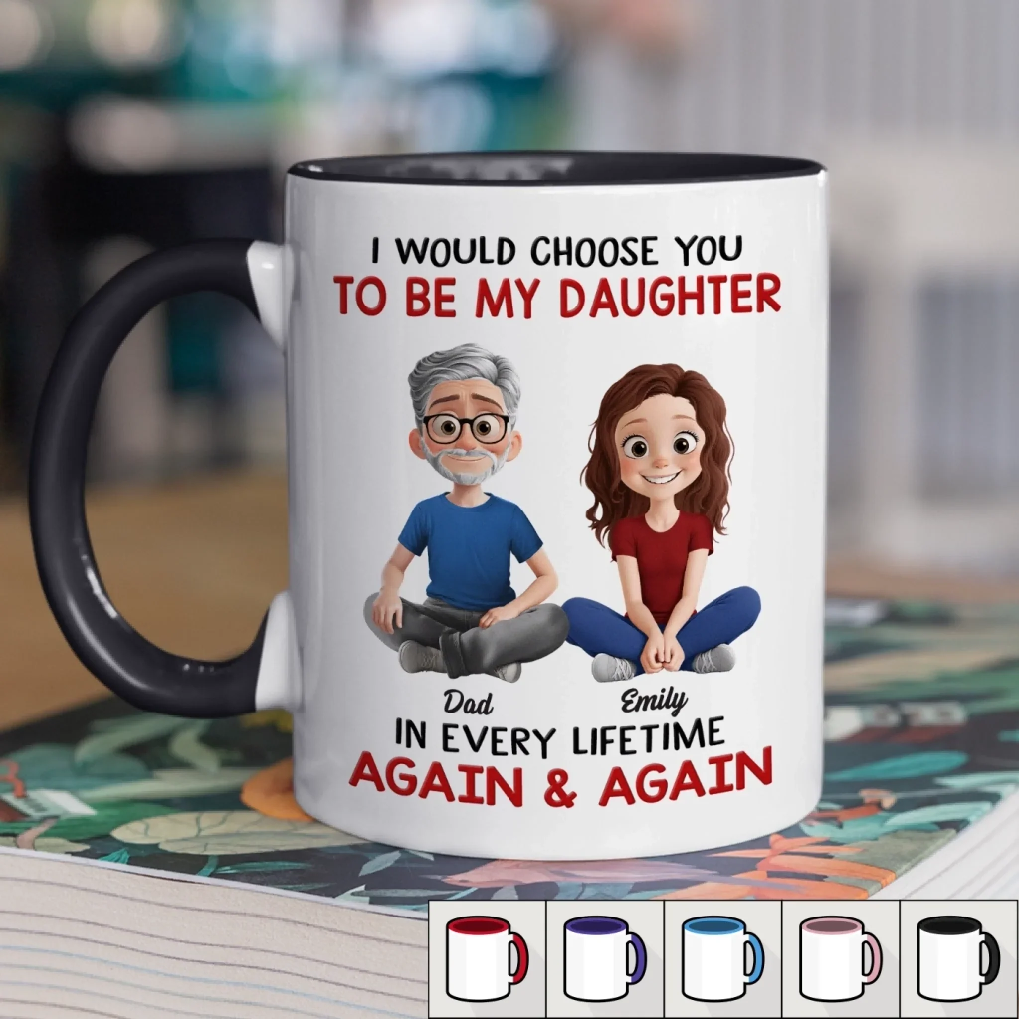 Custom Accent Mug - Personalized Birthday Gifts For Dad, Daughter - Chosen As My Daughter Forever