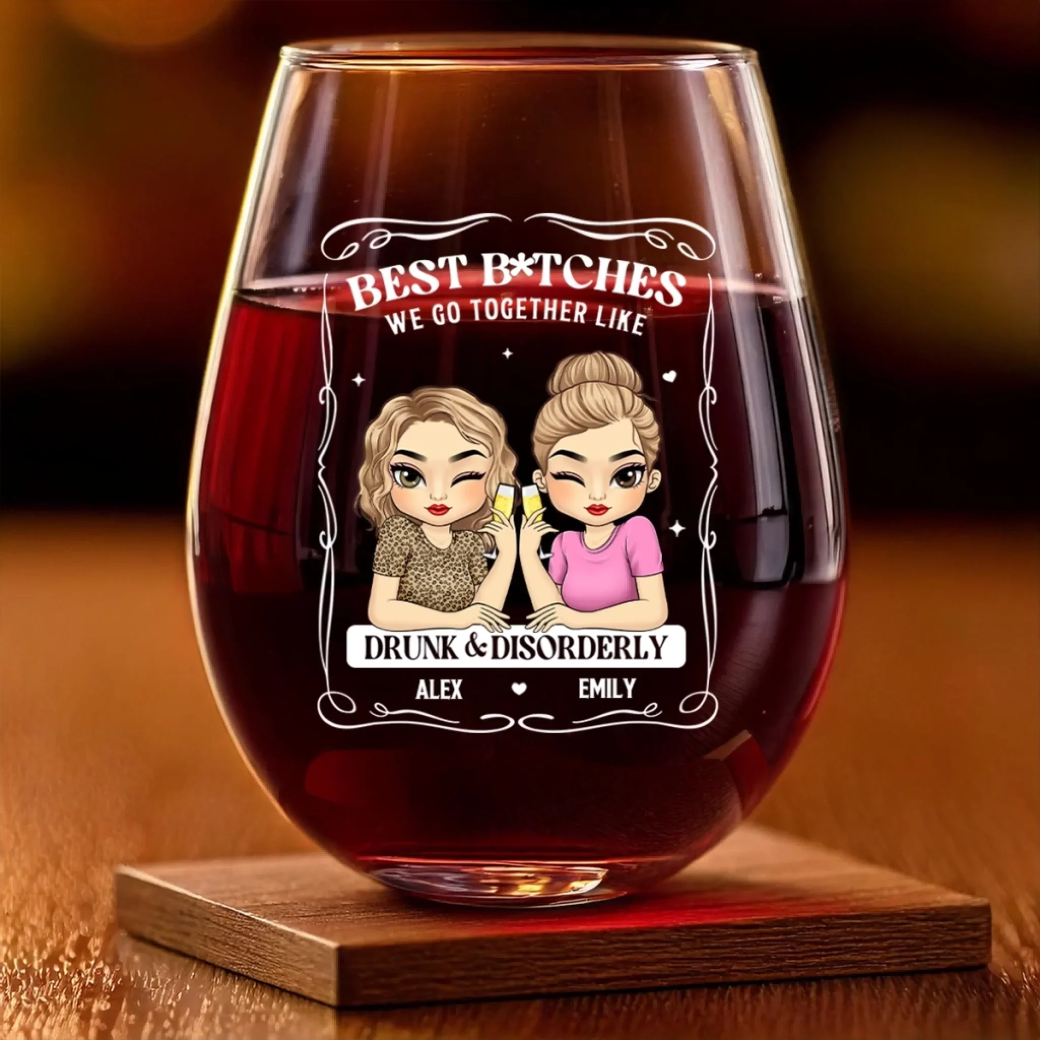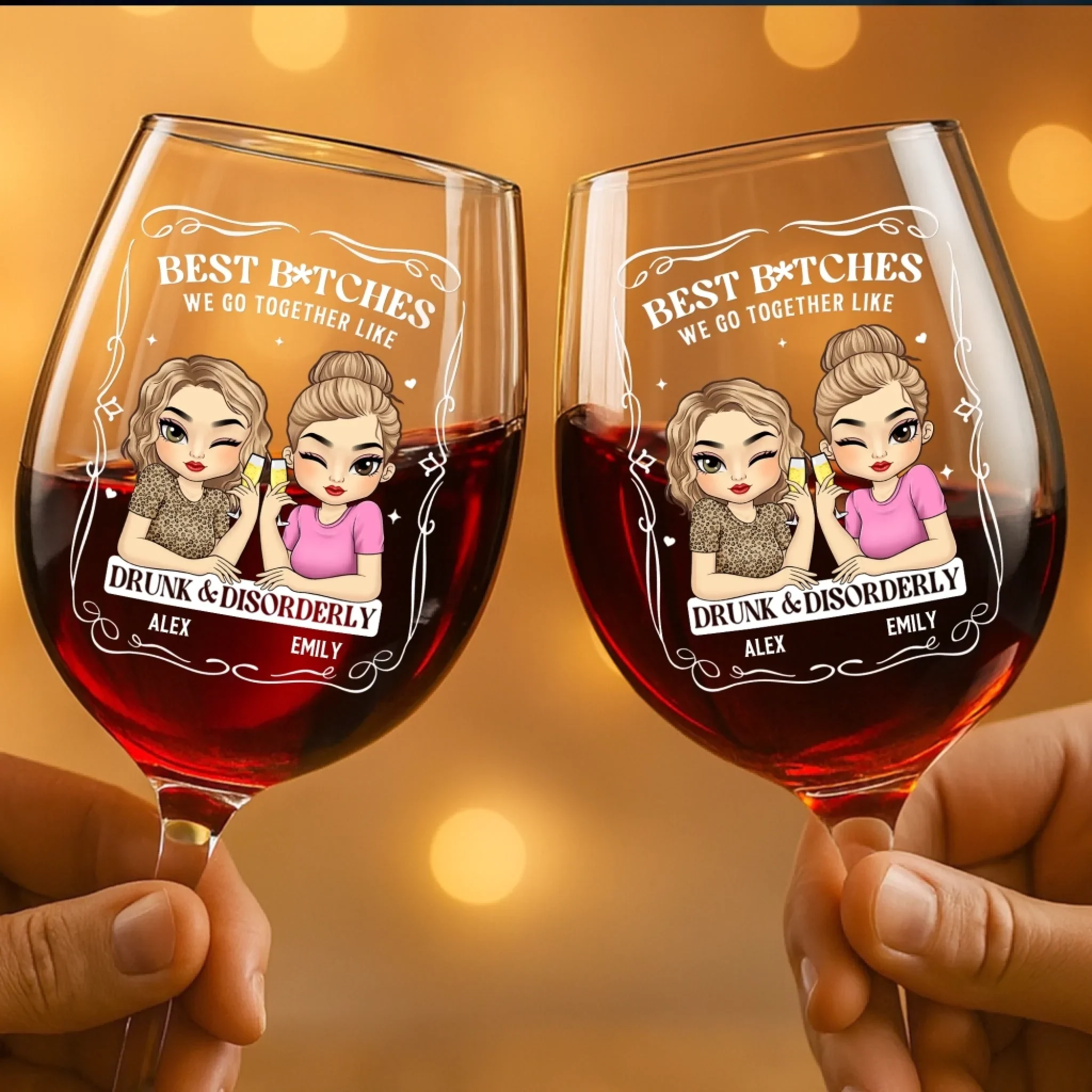 Custom Wine Glass - Personalized Best Friend Birthday Gifts For Women, Besties, Sisters, BFF - Together We Shine Brighter