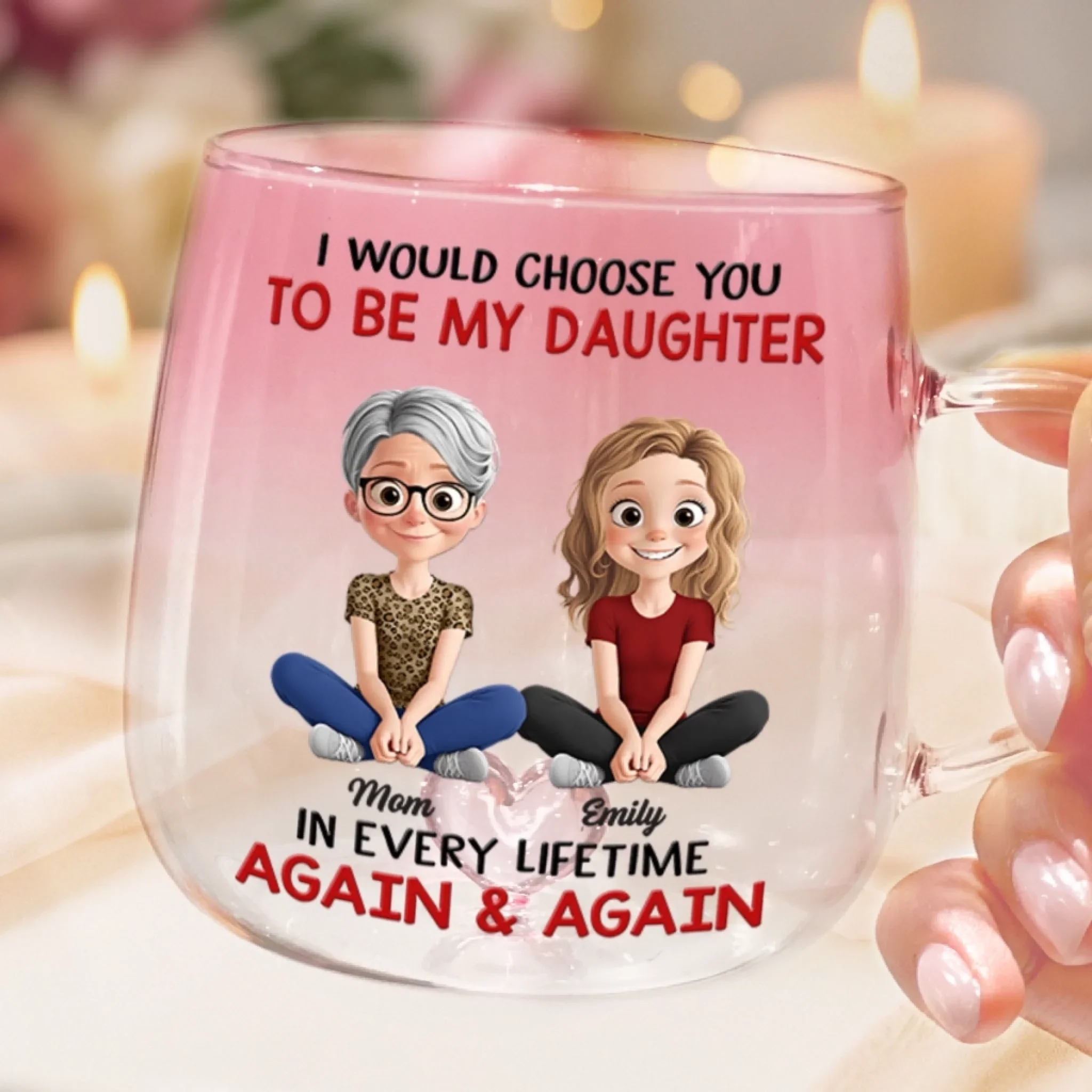 Custom Gradient Glass Mug - Personalized Birthday Gifts For Mom, Daughter - You, My Choice Every Time