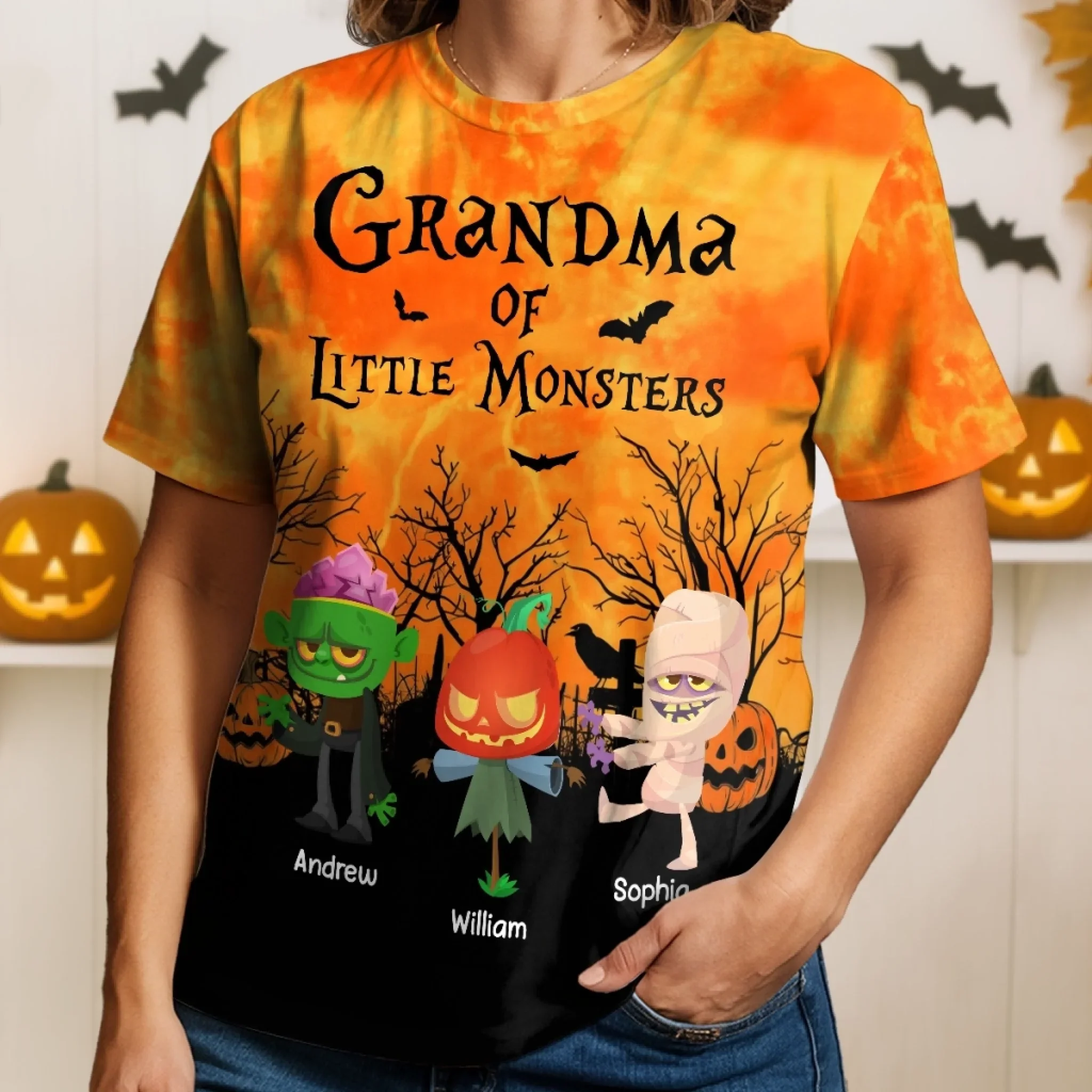 Custom Unisex T-shirt - Personalized Halloween Birthday Gifts For Mom, Grandma - Little Monsters Light Up Halloween