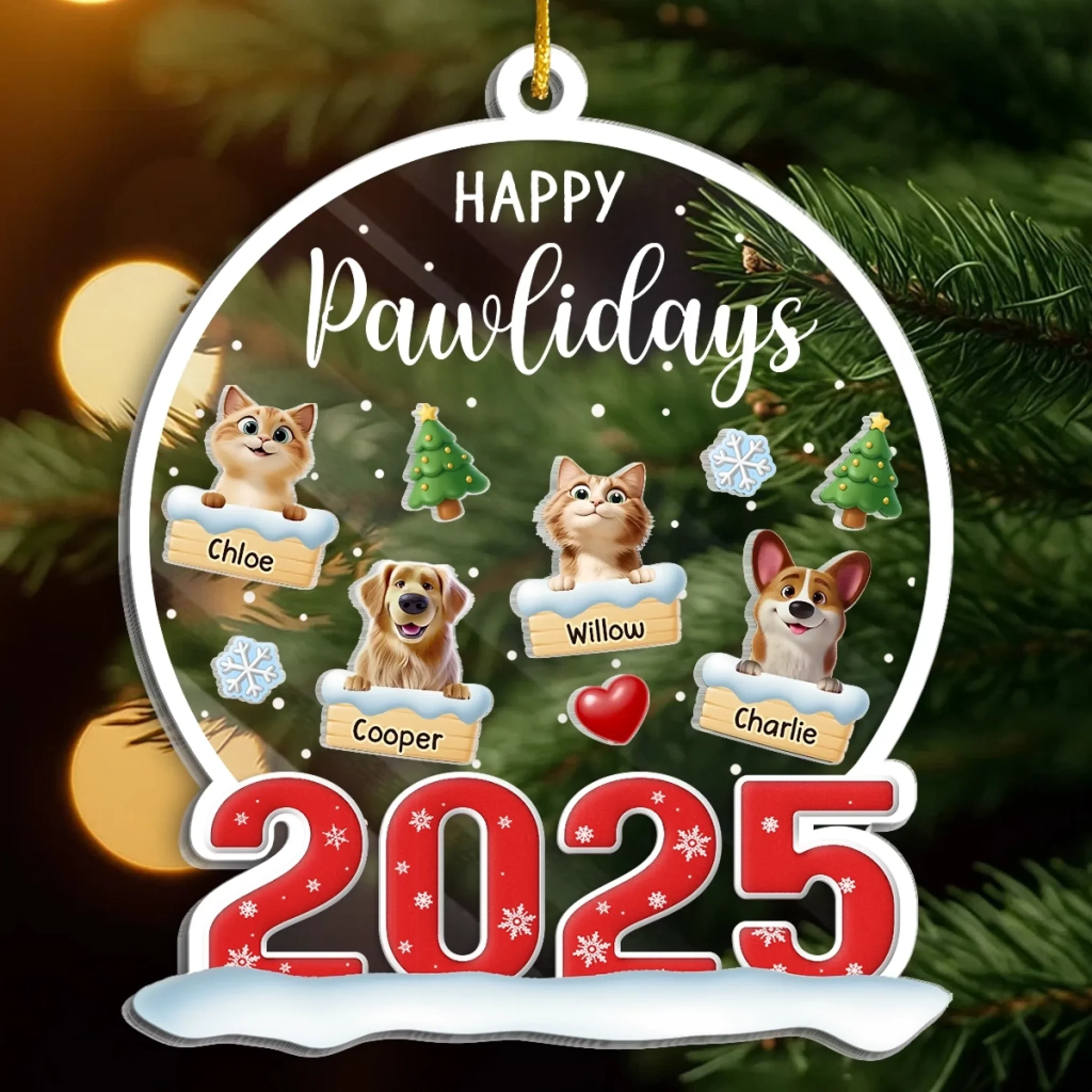 Custom Acrylic Ornament - Personalized Christmas Birthday Gifts For Family, Dog Cat Lovers - Happiness Baked Into Every Moment
