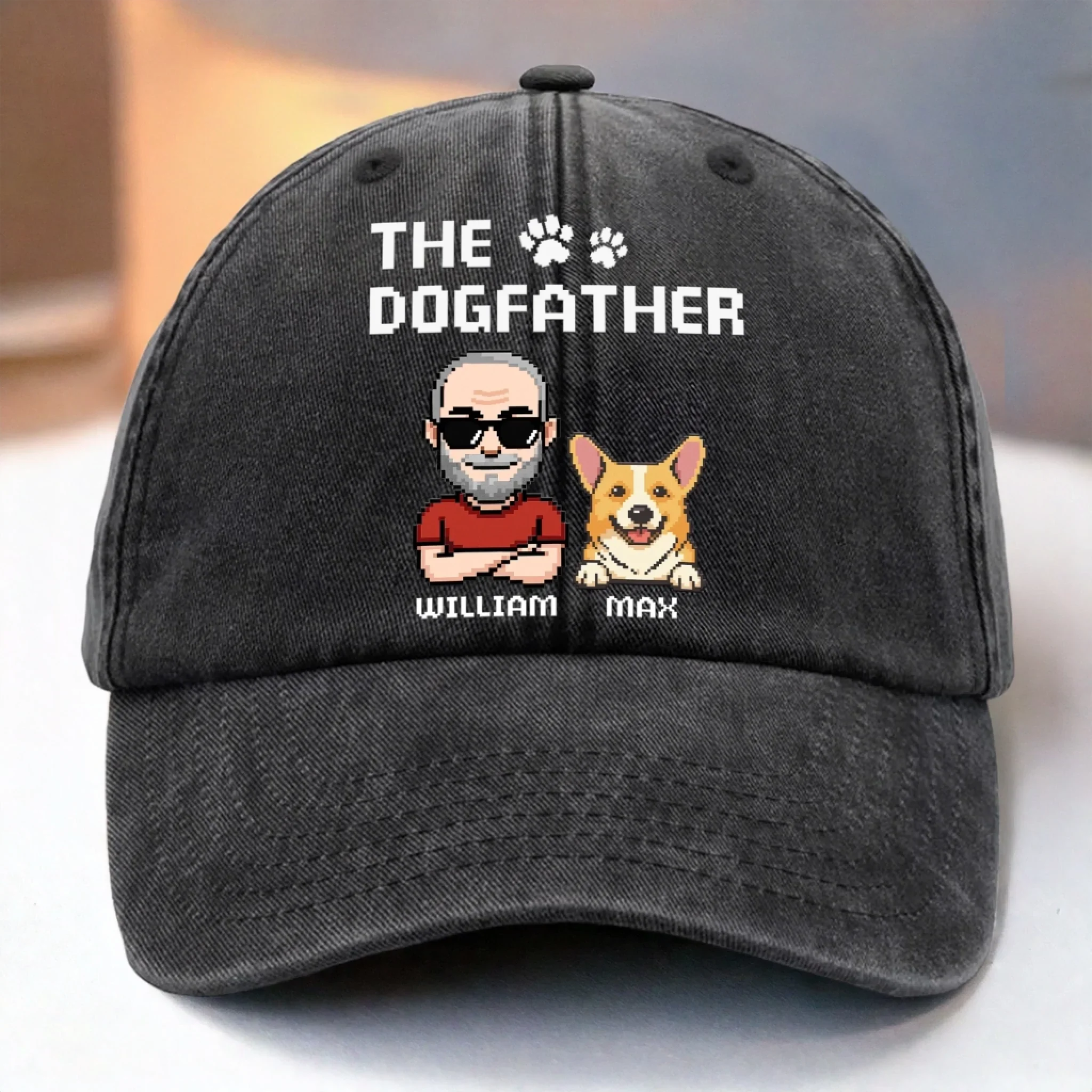 Custom Vintage Washed Denim Baseball Cap - Personalized Birthday Gifts For Dog Lovers, Dog Dad And Mom - The Dogfather, The Protector