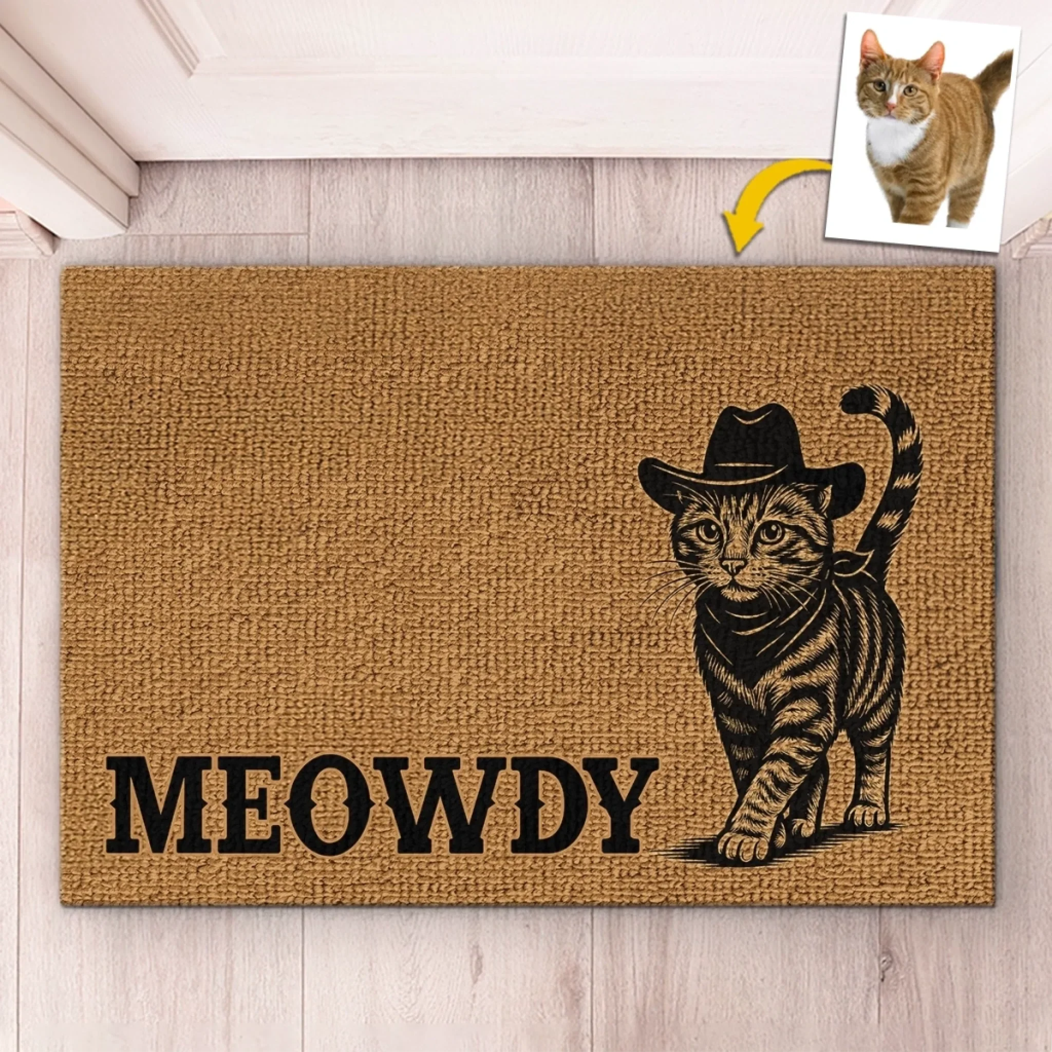 Custom Photo Home Decor Decorative Mat - Personalized Birthday Gifts For Cat Lovers, Cat Mom And Dad - Home Of The Cowboy Cat