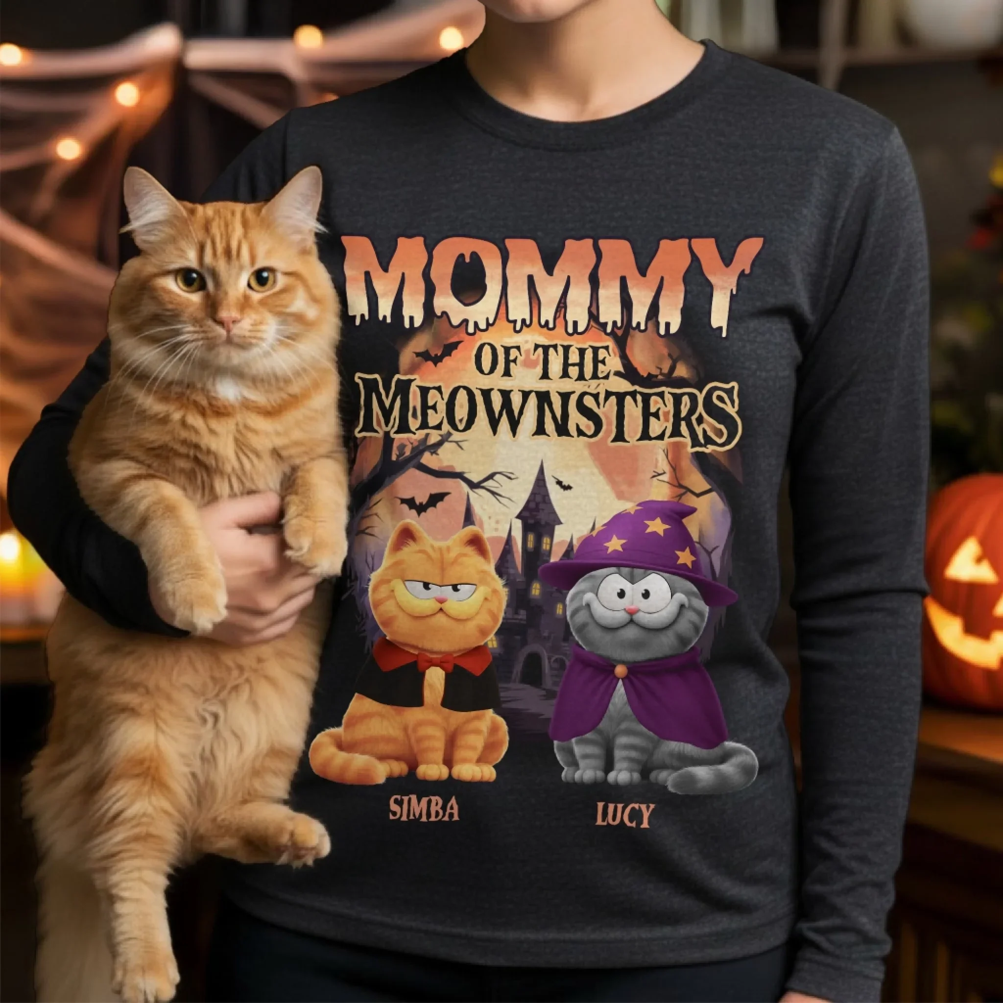 Custom Unisex Long Sleeve T-Shirt - Personalized Halloween Birthday Gifts For Cat Lovers, Cat Mom And Dad - The Purrfect Nightmare