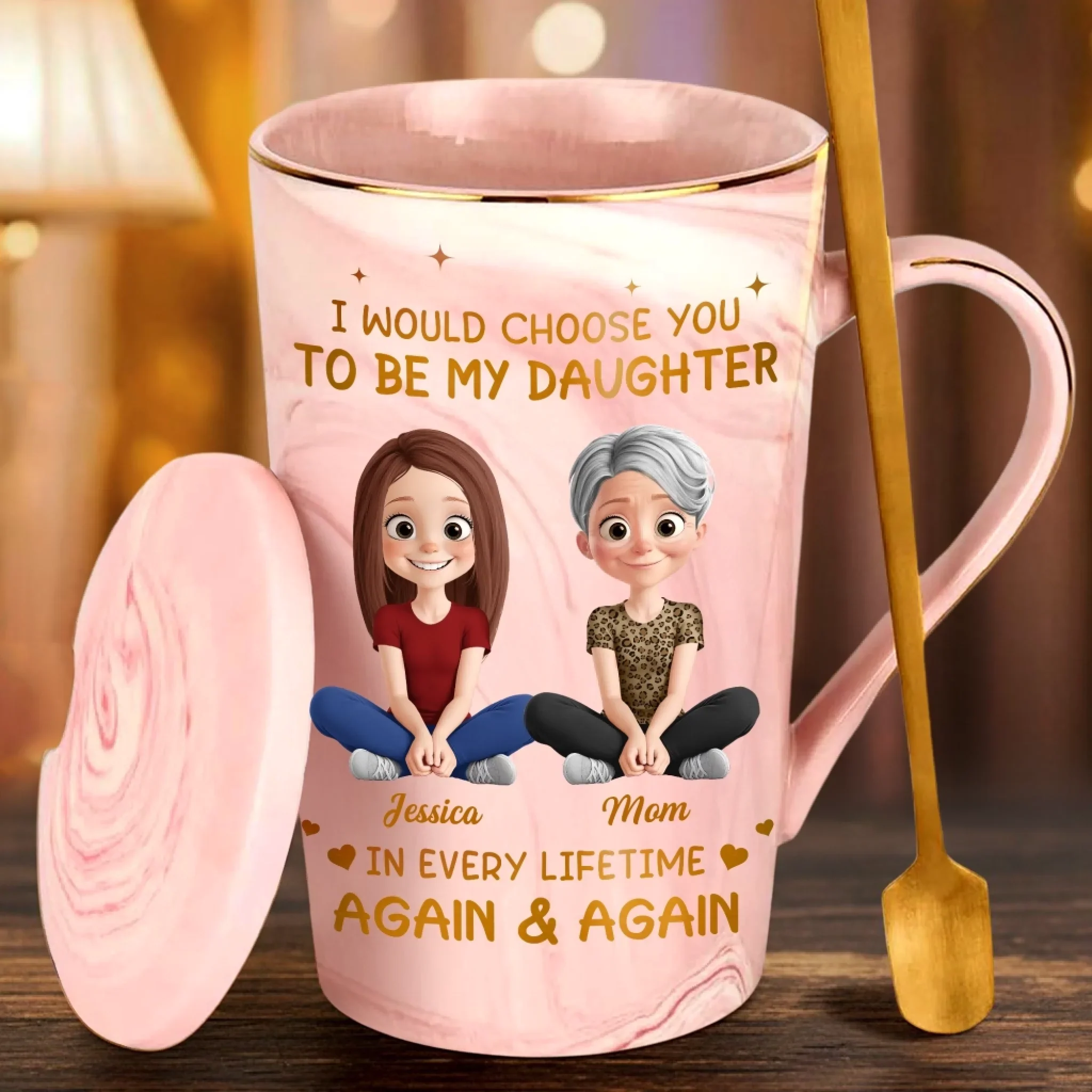Custom 14oz Marble Mug - Personalized Birthday Gifts For Mom, Daughter - Mother Daughter Bond Shines Bright