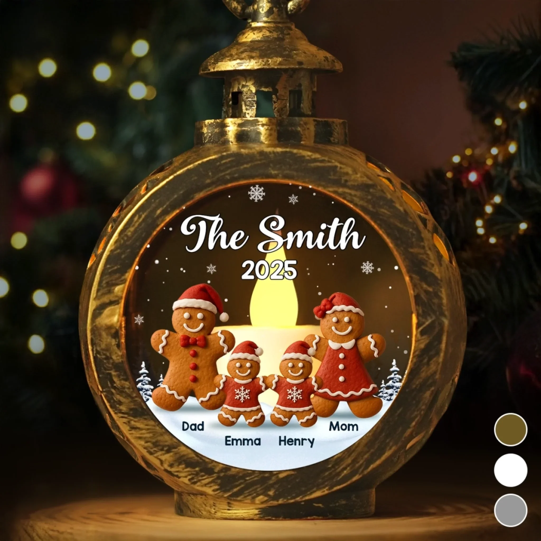 Custom Candlelight Lantern Ornament - Personalized Christmas Birthday Gifts For Mom, Dad, Kids - A Gingerbread Family In Snow