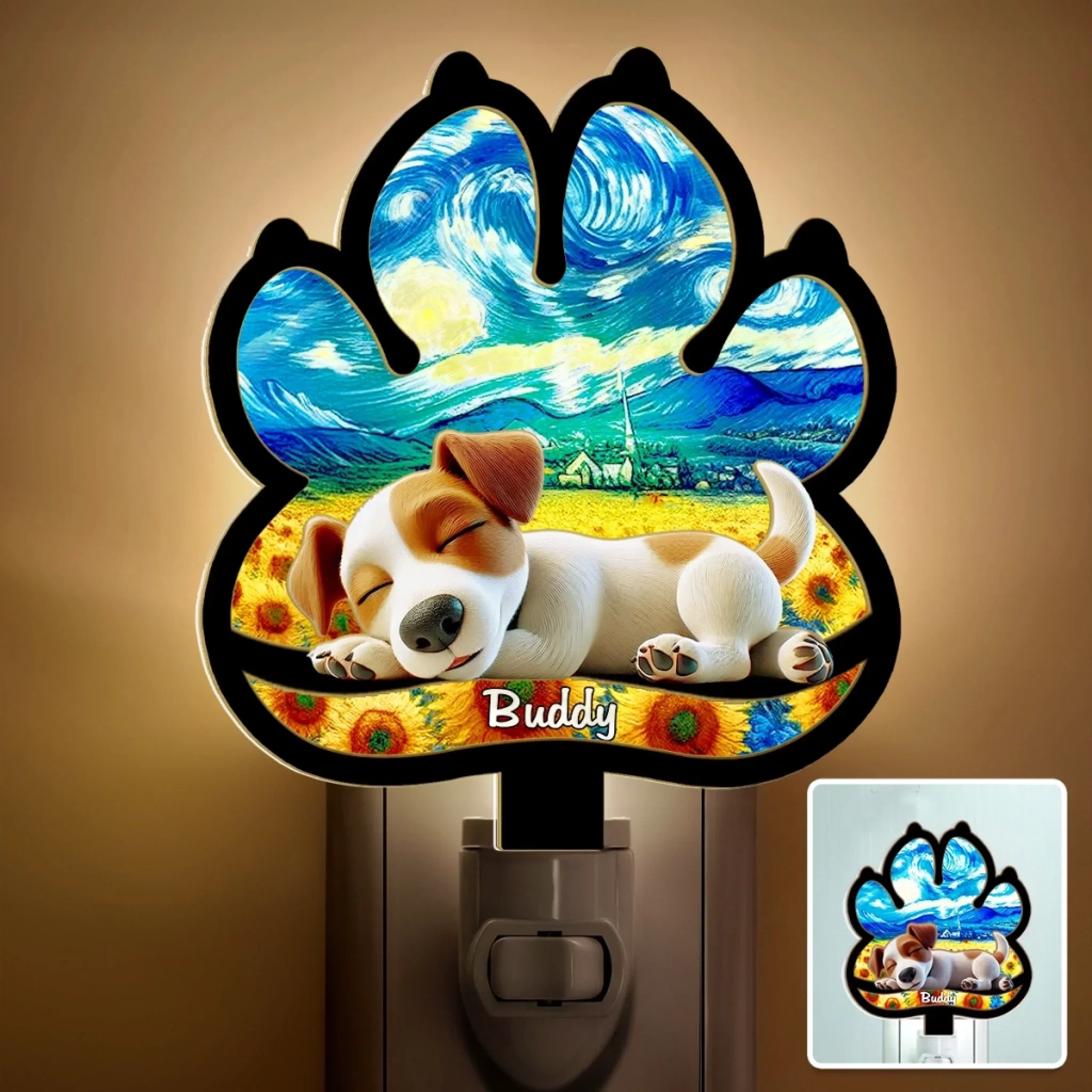 Custom Starry Night Wood And Acrylic Night Light - Personalized Pet Memorial Sympathy Gifts For Dogs - Forever Loved Never Forgotten