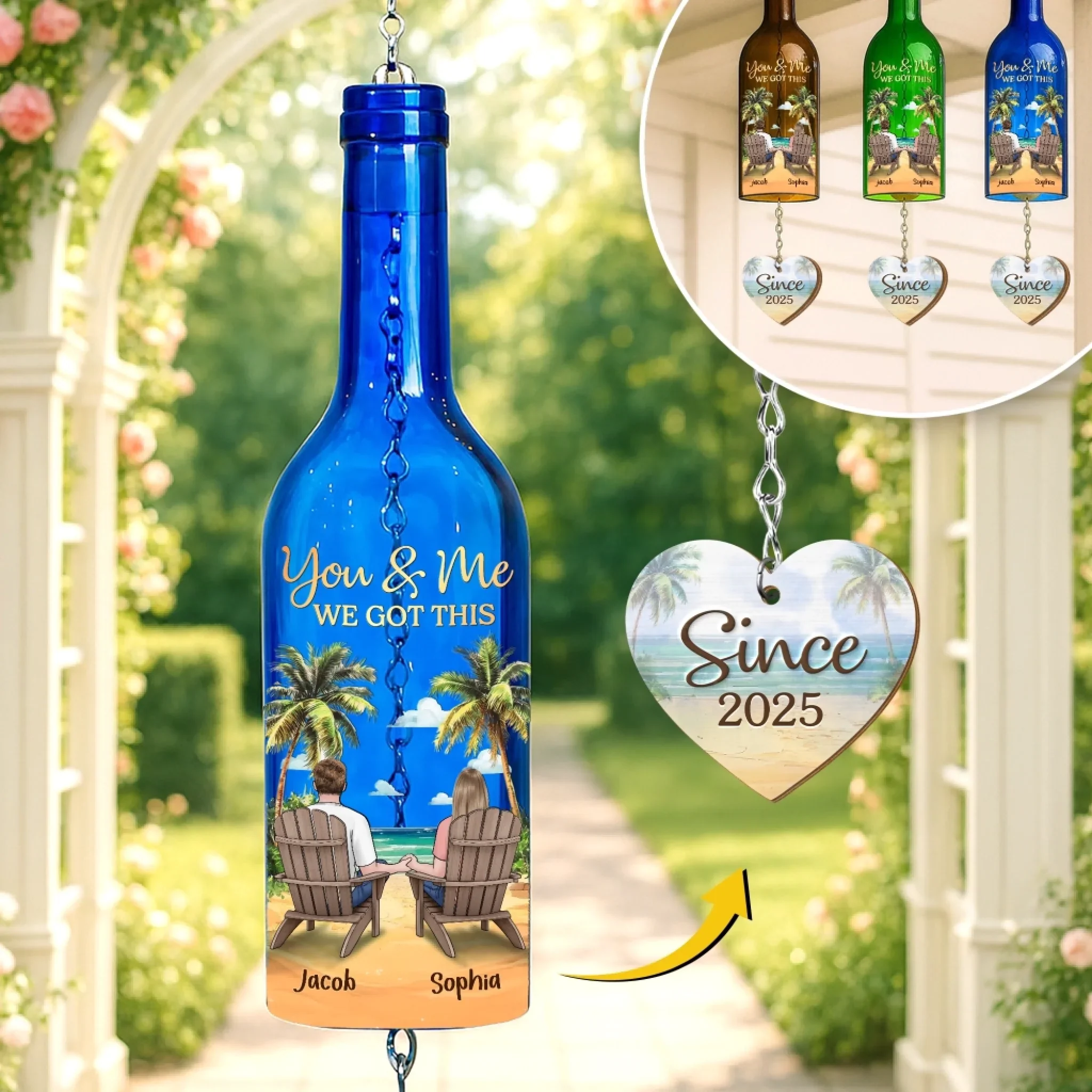 Custom Wine Bottle Wind Chime - Personalized Anniversary Wedding Gifts For Husband And Wife, Him And Her - You & Me, We Got This