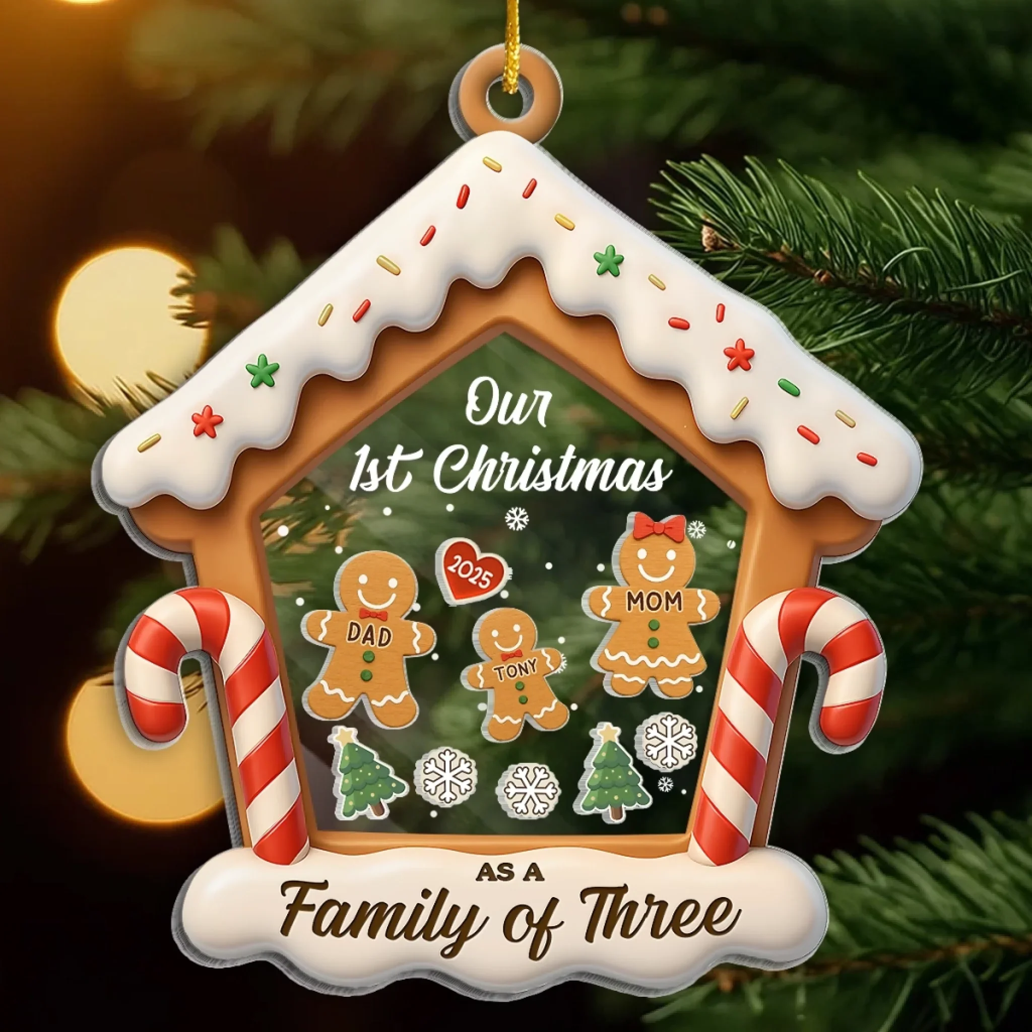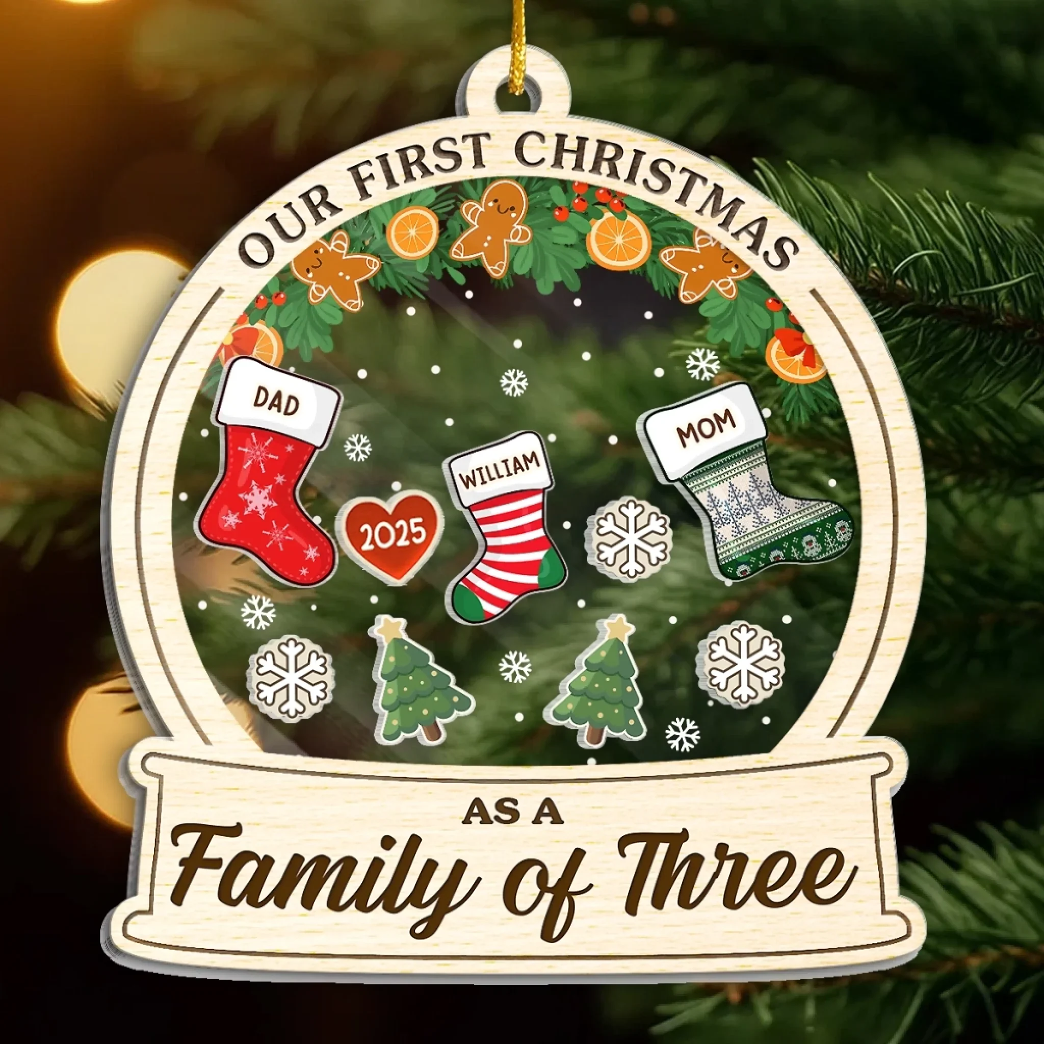 Custom First Christmas 3 Layers Shaker Ornament - Personalized Christmas Birthday Gifts For Mom, Dad, Brother, Sister, Kids - The Gift Of Family Love