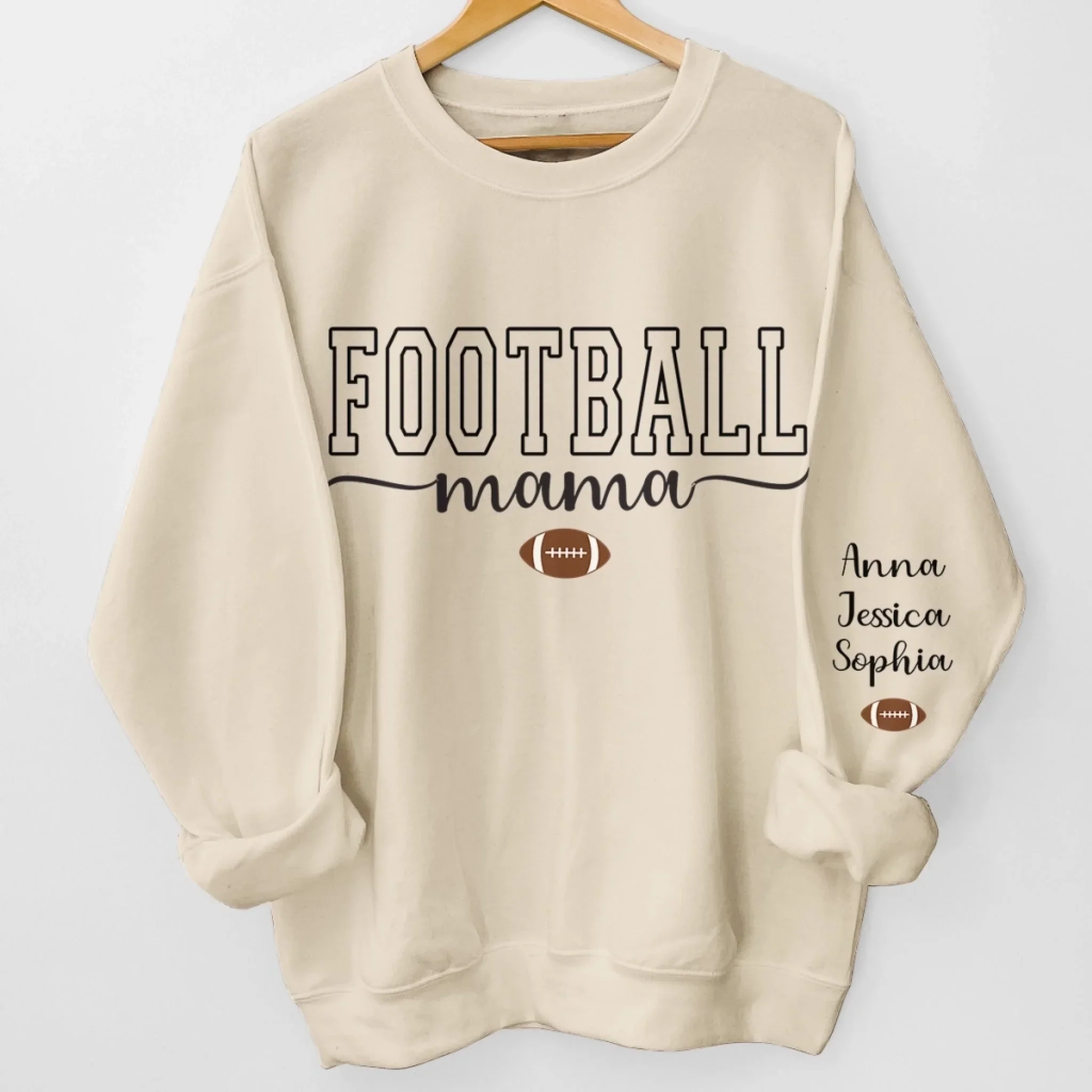 Custom Football Mama Unisex Sweatshirt, Hoodie With Design On Sleeve Personalized Birthday Football Gifts For Mom, Football Lovers, NFL Fans, Sport Lovers - Football Mama with Kids Name
