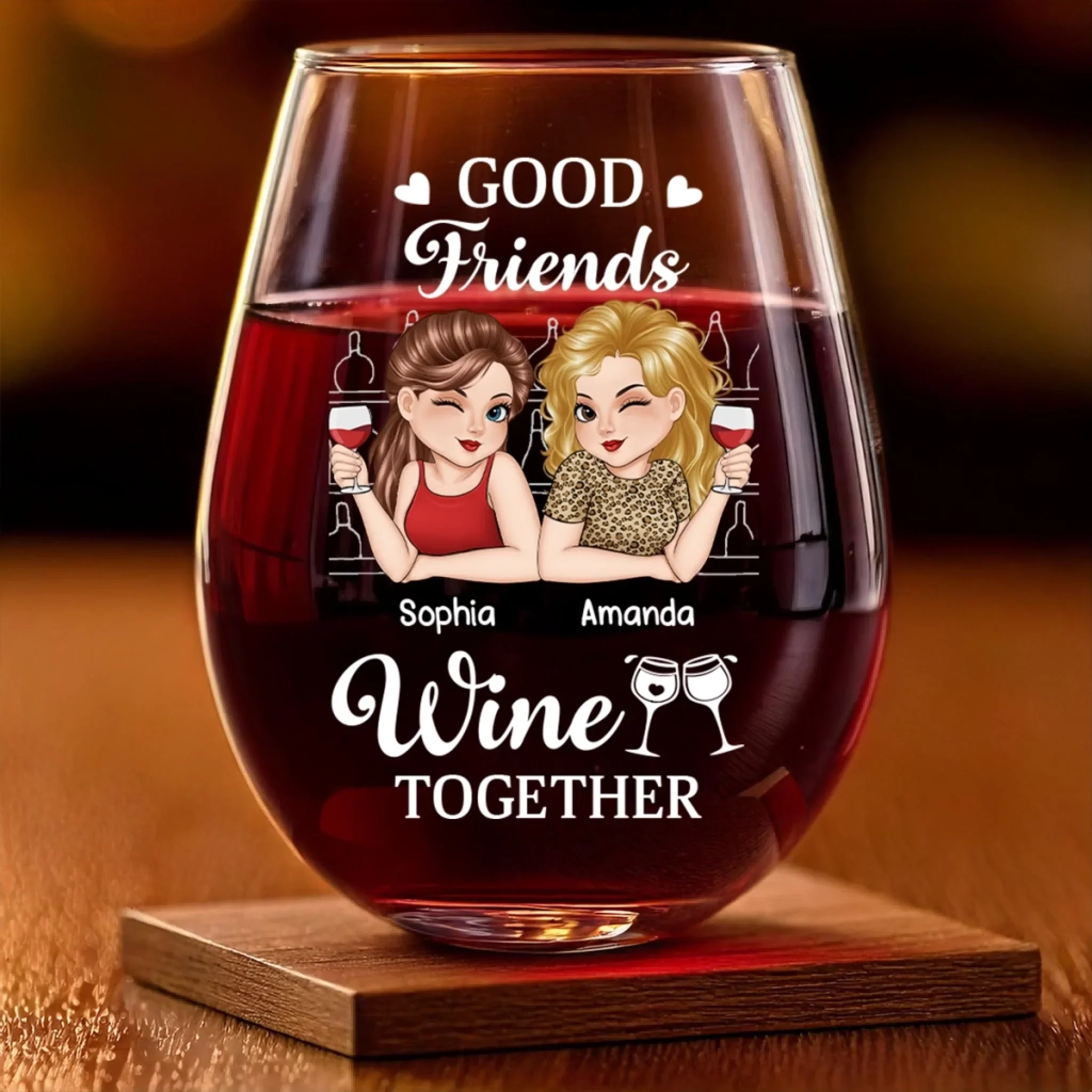 Custom Wine Glass - Personalized Best Friend Birthday Gifts For Women, Besties, Sisters, BFF - Good Friends Wine Together
