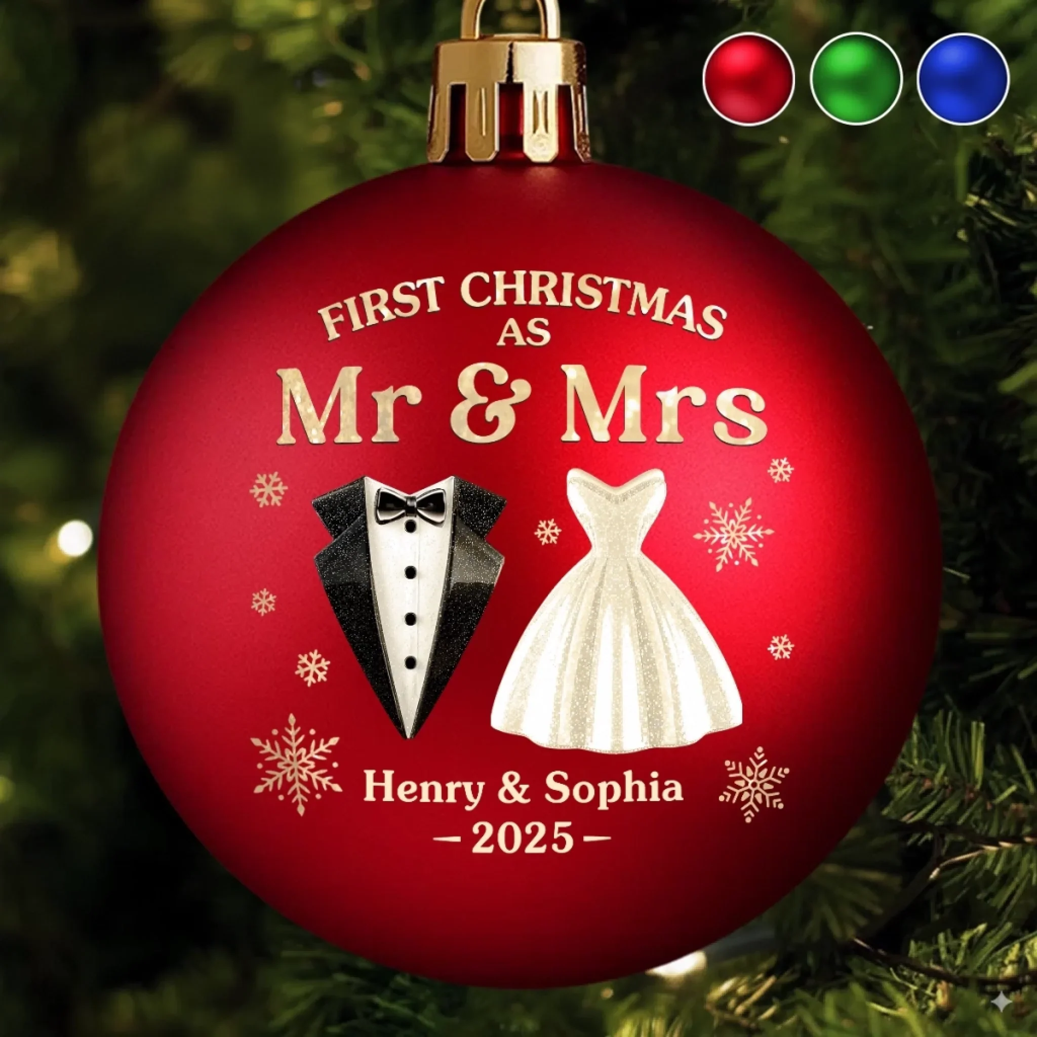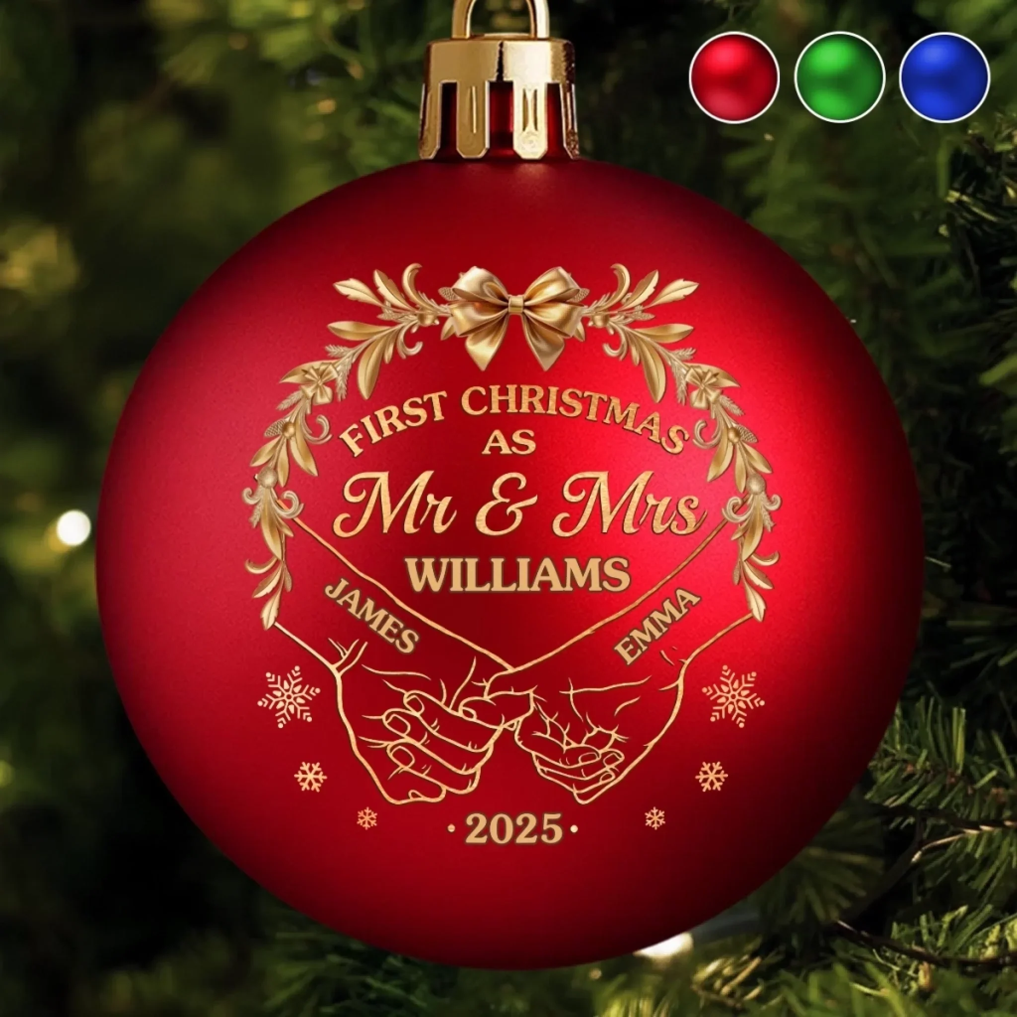 Custom First Christmas Colored Ball Ornament - Personalized Engaged Anniversary Christmas Wedding Gifts For Husband And Wife, Him And Her - Just Wed, Just Blessed