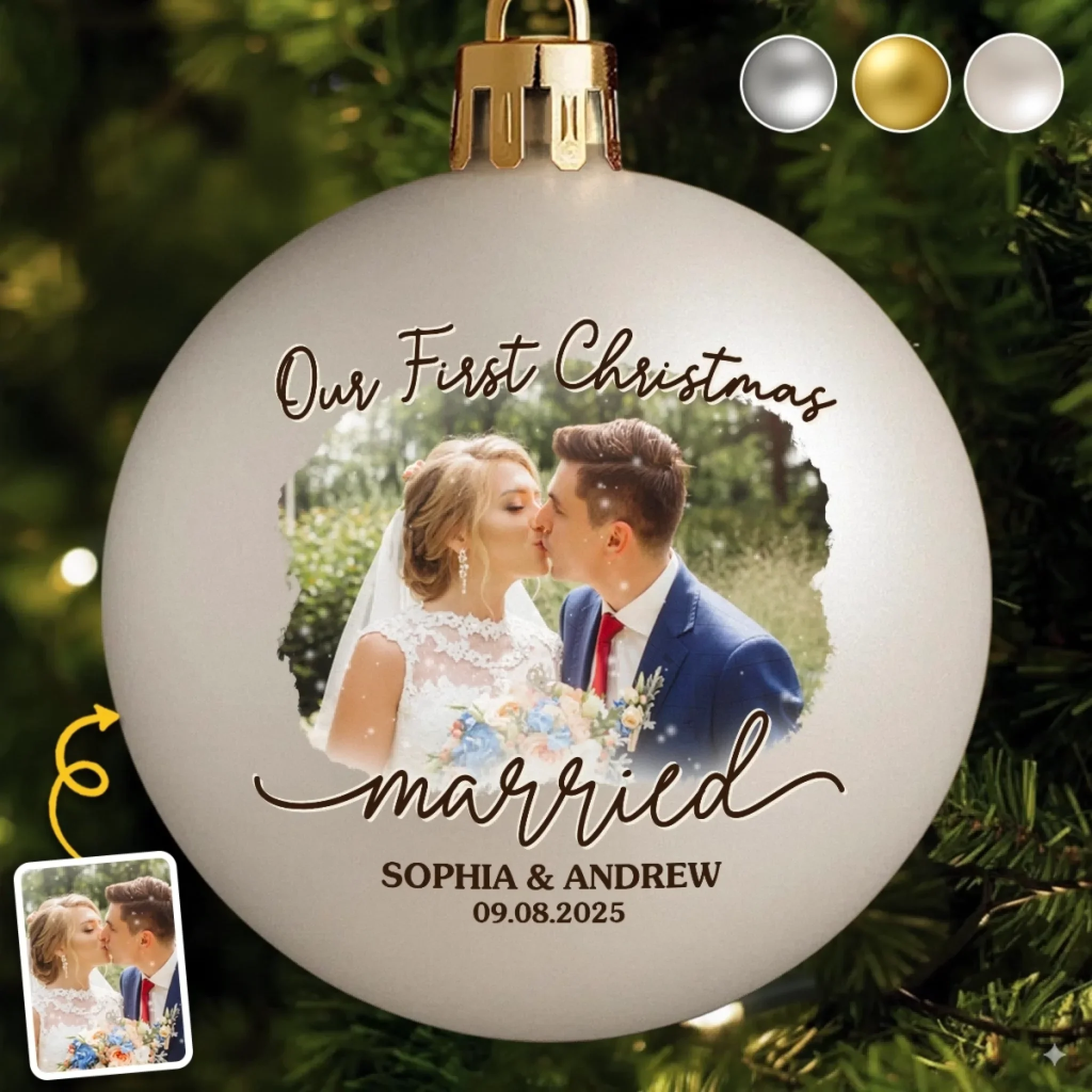 Custom Photo First Christmas Colored Ball Ornament - Personalized Married Anniversary Christmas Wedding Gifts For Husband And Wife, Him And Her - A Love Story Written In Time