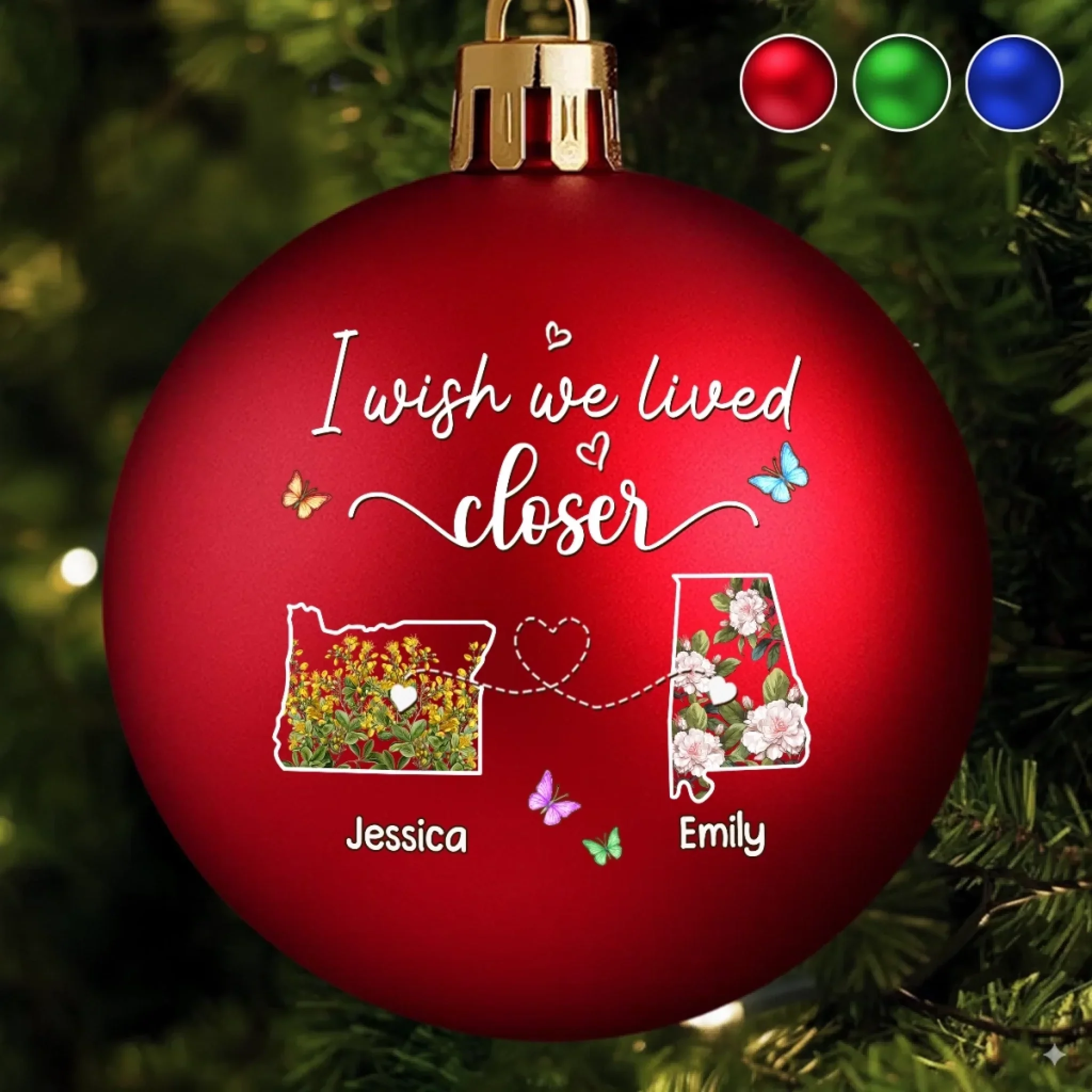 Custom Long Distance Colored Ball Ornament - Personalized Best Friend Christmas Birthday Gifts For Women, Besties, Sisters, BFF - I Wish We Lived Closer