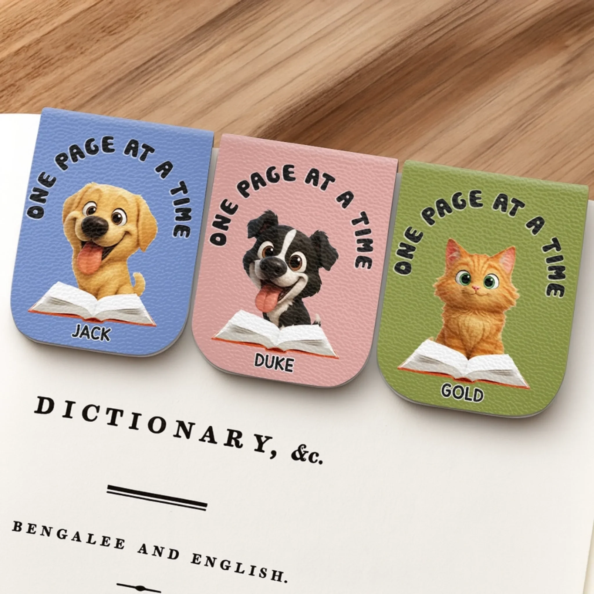 Custom Leather Magnetic Bookmark - Personalized Bookish Gifts For Book Lovers, Bookworms, Dog Dad And Mom, Cat Owners - Paws Beside Pages