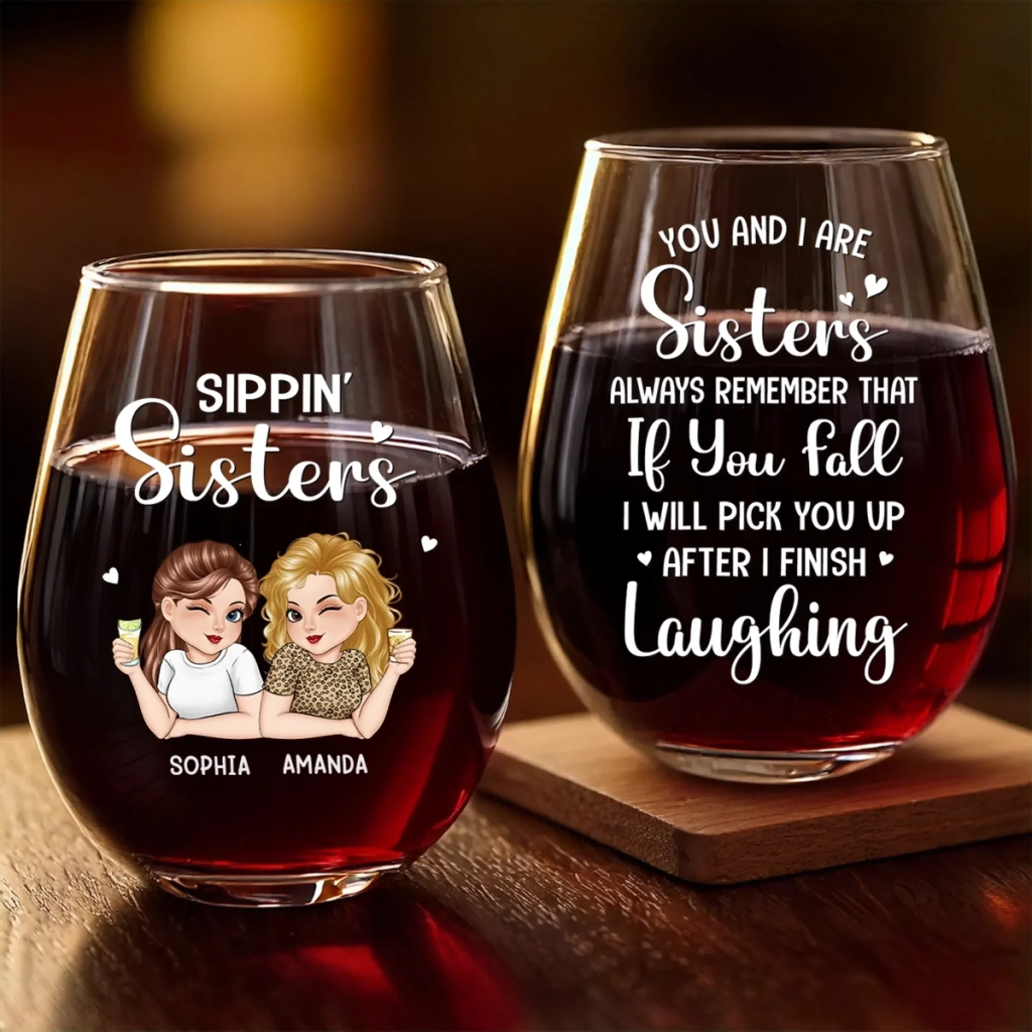 Custom Wine Glass - Personalized Best Friend Christmas Birthday Gifts For Women, Besties, Sisters, BFF - Laughs In Every Pour
