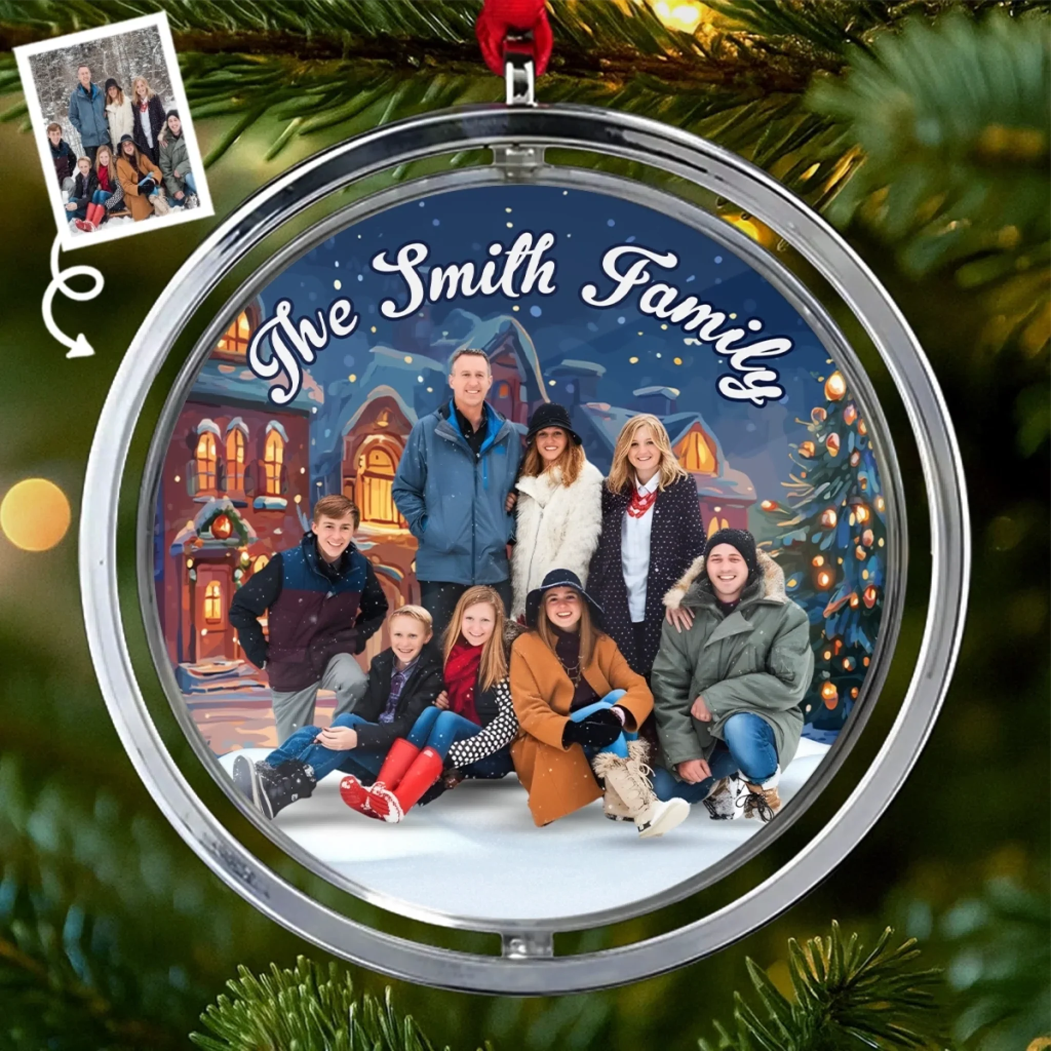 Custom Photo Acrylic Rotating Ornament - Personalized Christmas Birthday Gifts For Mom, Dad, Brother, Sister, Kids - Hearts Together This Christmas Season