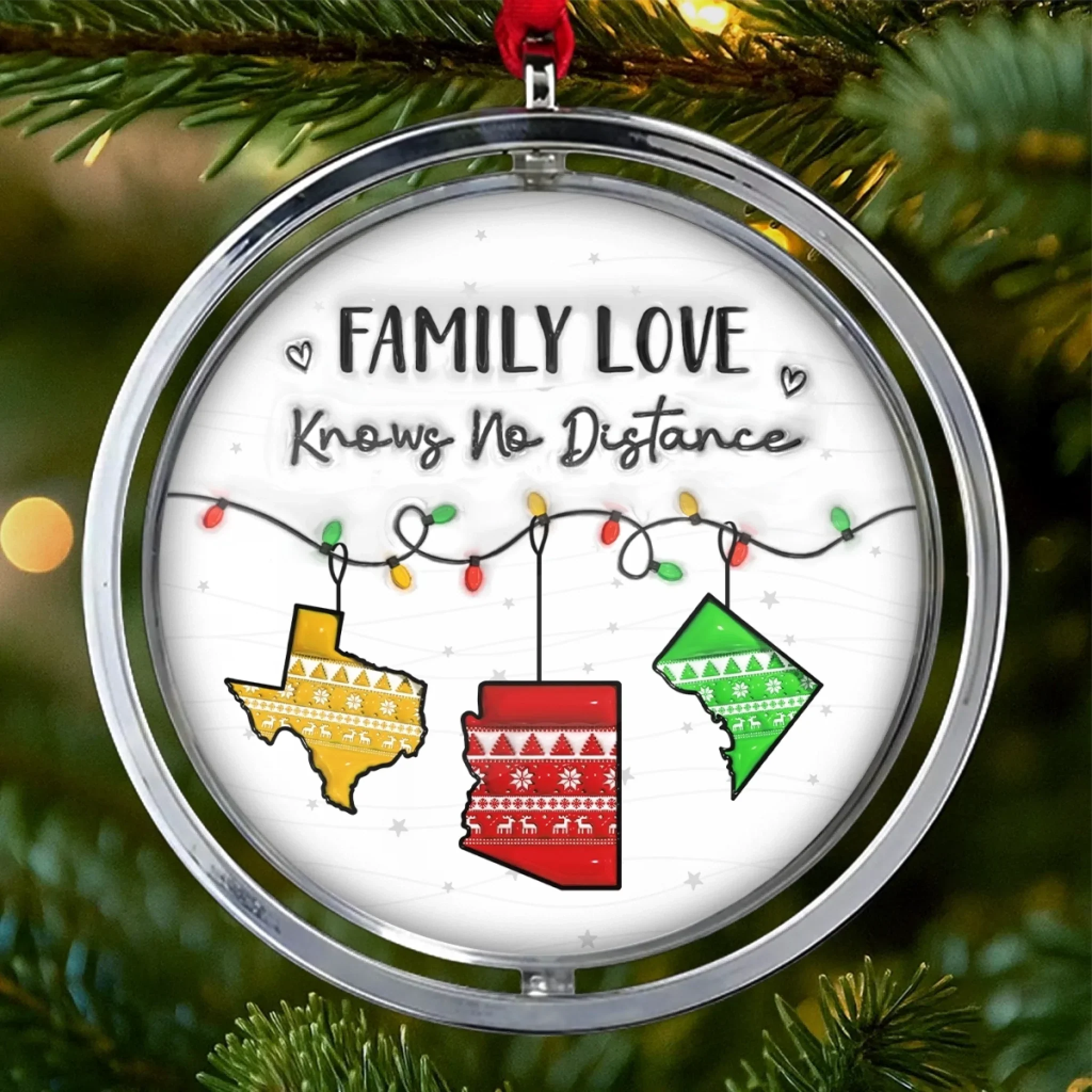 Custom Long Distance Acrylic Rotating Ornament - Personalized Christmas Birthday Gifts For Mom, Dad, Brother, Sister, Kids - Love Makes Every Christmas Bright