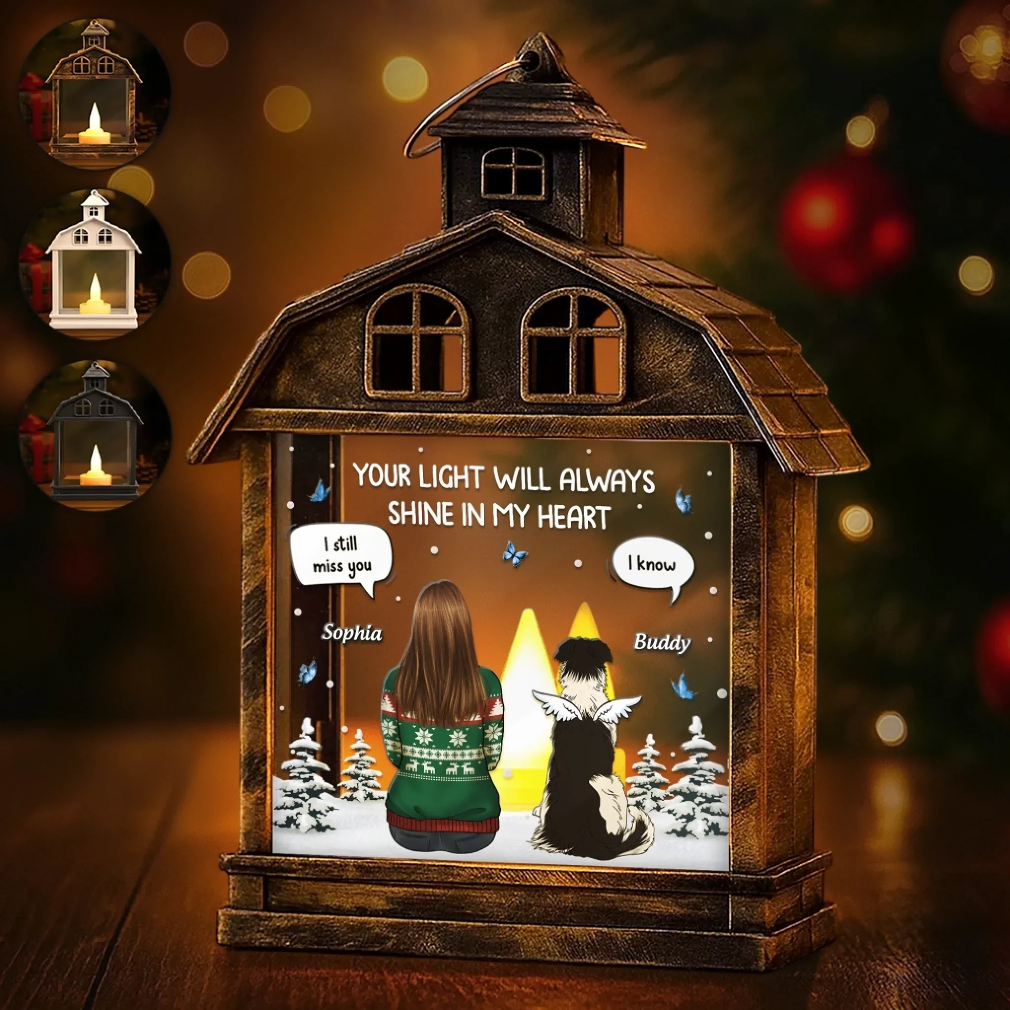Custom LED House Lantern Light - Personalized Pet Christmas Memorial Sympathy Gifts For Dogs - Love Stays In Every Paw Print