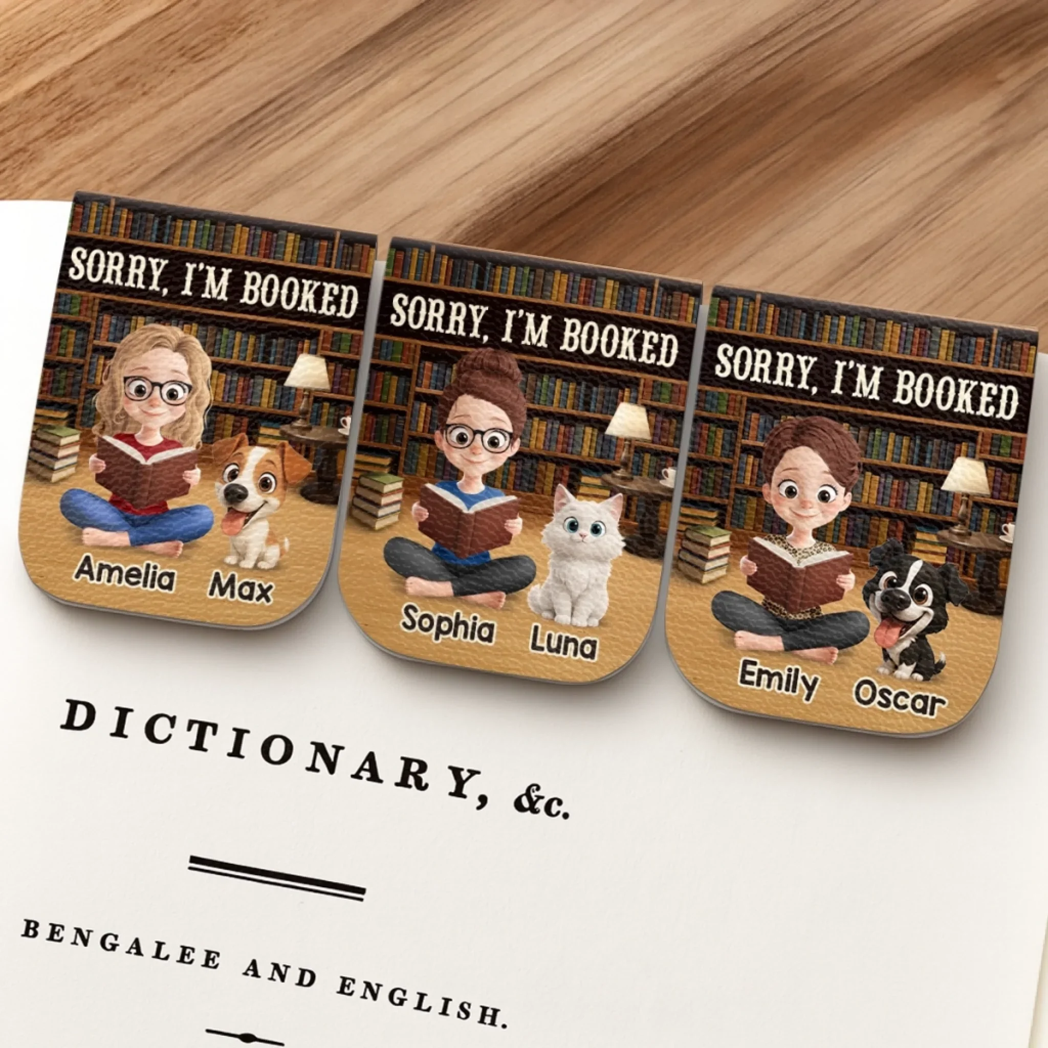 Custom Leather Magnetic Bookmark - Personalized Bookish Gifts For Book Lovers, Bookworms, Dog Cat Lovers - Stories With Paws