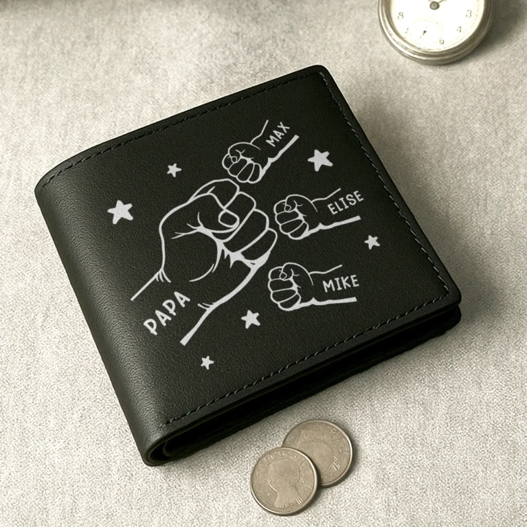 Holding Love In Every Sip - Family Personalized Custom Double-Sided Printed Leather Wallet - Father's Day, Gift For Dad, Grandpa