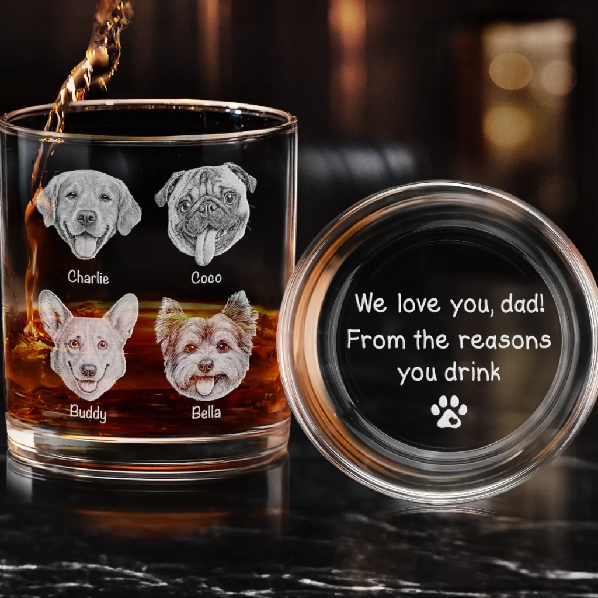 Custom Photo You're Pawsitively The Best, Dad - Dog & Cat Personalized Custom Whiskey Glass With Bottom And Side Engraving - Father's Day, Gift For Dad, Pet Owners, Pet Lovers