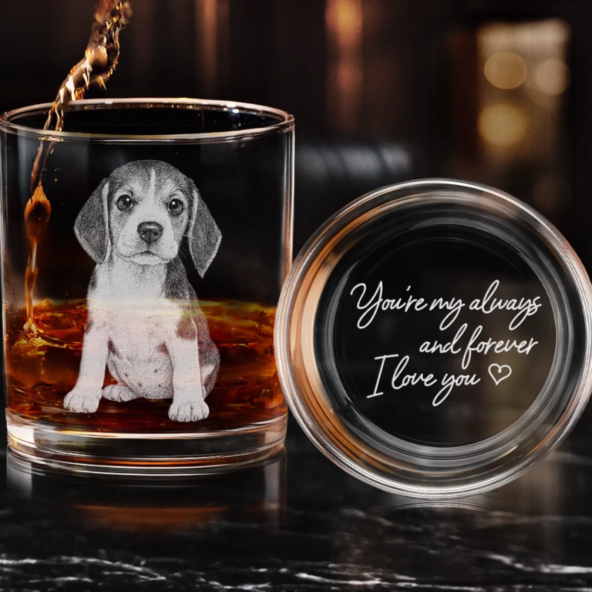 Custom Photo You're My Always And Forever - Memorial Personalized Custom Whiskey Glass With Bottom And Side Engraving - Sympathy Gift For Pet Owners, Pet Lovers