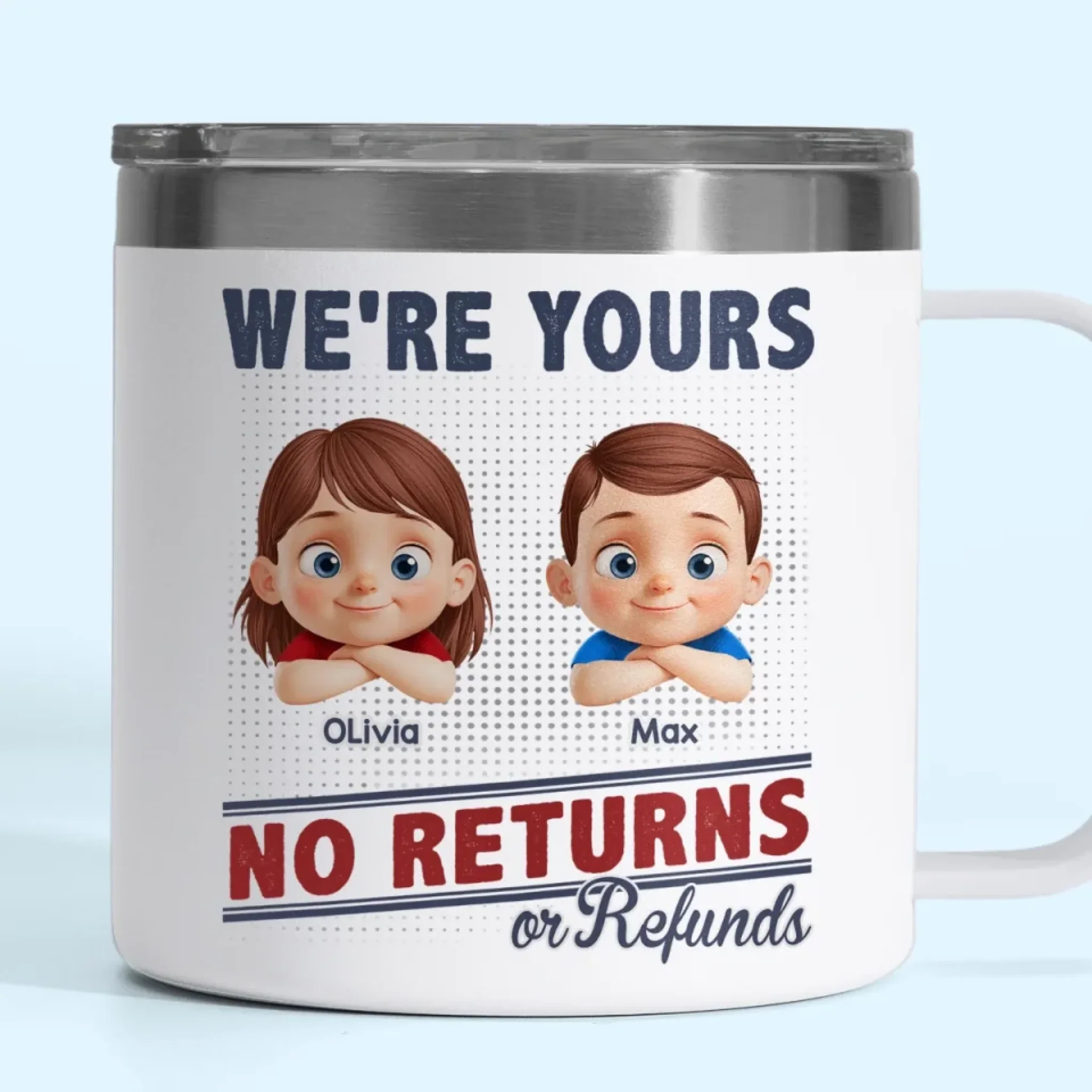No Exchanges, No Refunds, Just Love - Family Personalized Custom 14oz Stainless Steel Tumbler With Handle - Father's Day, Gift For Dad, Grandpa